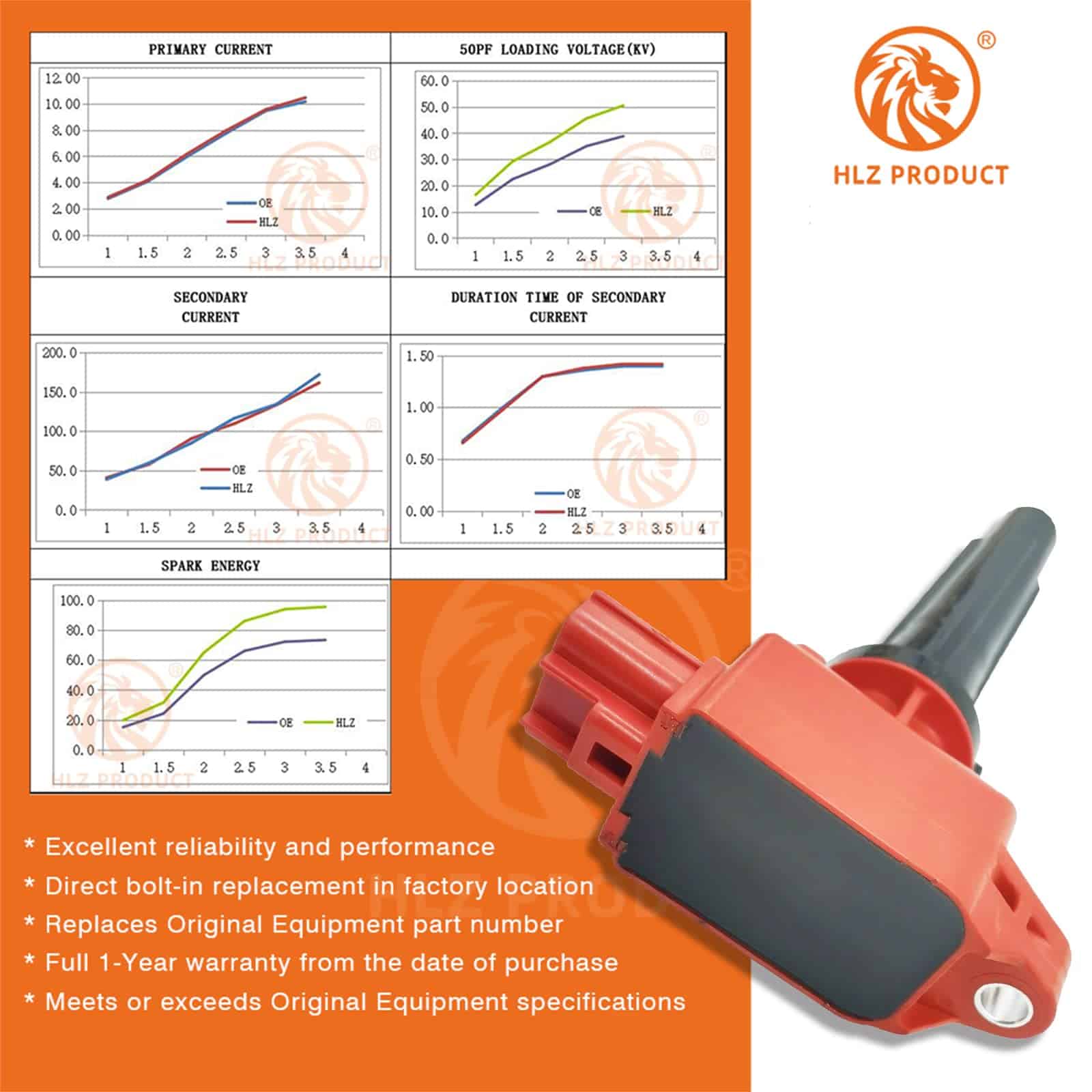 HLZ PRODUCT utilize the latest OE technology and components to bring exceptional quality to exceed OE requirements. Upgrade 15% more energy than OE coils. Our ignition coil packs can be easily located on both sides of the engine inside the engine bay which can be installed in minutes. You can experience more consistent, smooth engine starts right away.