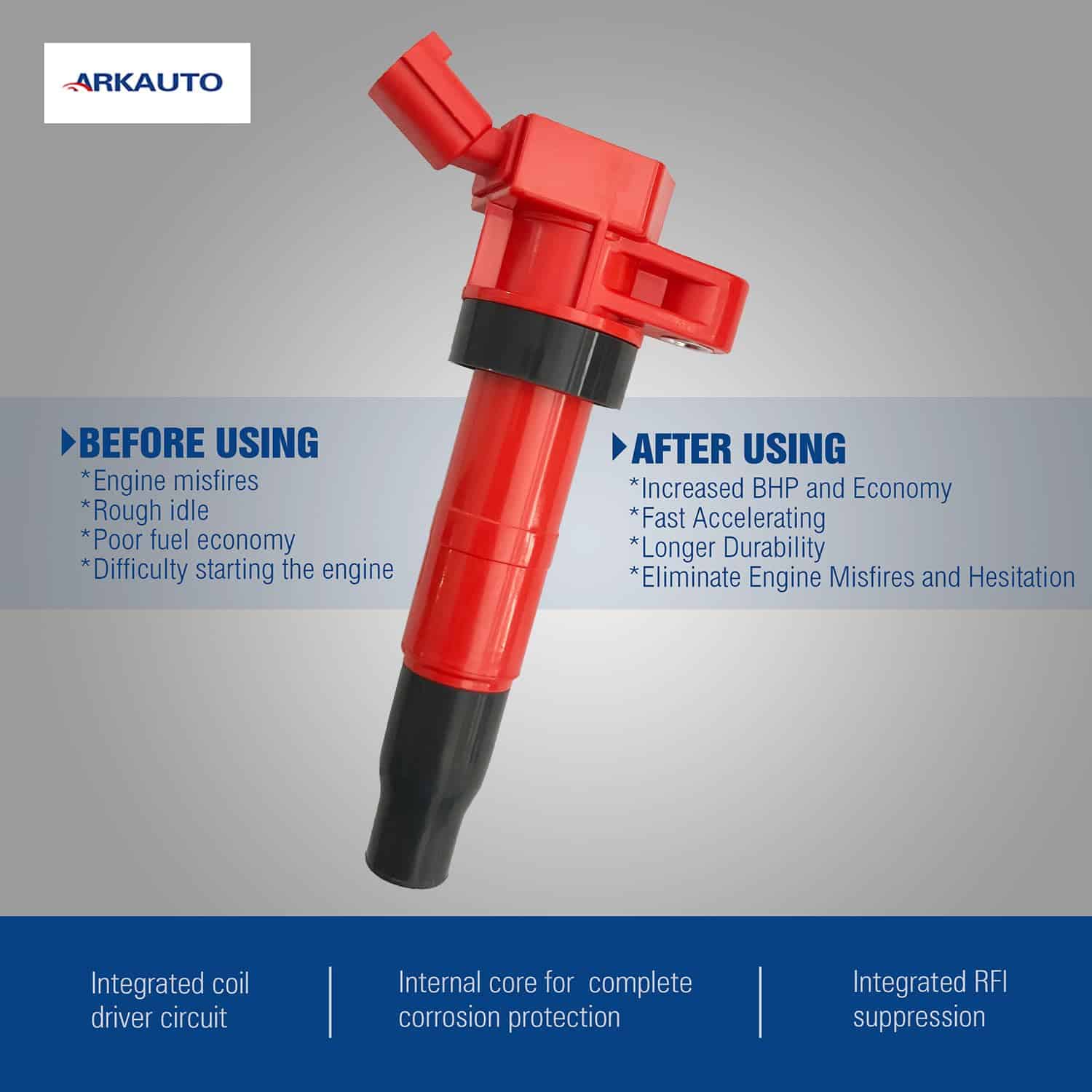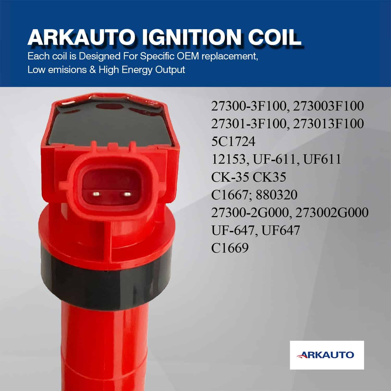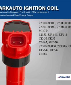 Las bobinas de encendido de ARKAUTO siempre se fabrican con cobre de alta calidad, diseñadas para una aplicación específica y probadas en carretera. Por favor, revise cuidadosamente la información a continuación para asegurarse de que esta pieza sea compatible con su vehículo. Ventaja – Las bobinas de encendido de ARKAUTO están diseñadas según los tipos OE originales, que pueden reemplazar perfectamente sus bobinas defectuosas originales y funcionar como las originales. Esta bobina es reemplazo para OE:27300-3F100, 273003F100, 27301-3F100, 273013F100, 5C1724, 12153, UF-611, UF611, CK-35, CK35, C1667, 880320, 27300-2G000, 273002G000, UF-647, UF647, C1669, los compradores deben comparar cuidadosamente el OE con los coches originales antes de realizar el pedido para evitar comprar una pieza incorrecta y causar una pérdida innecesaria. Compatible con Tucson Genesis Coupe Santafe Sonata Kia Forte Optima Rondo Sorento Sportage Borrego Equus Génesis. Reduce problemas comunes de bobinas de encendido como; inicio difícil o nulo, tiempo de arranque largo, fallos de encendido, falta de potencia, cambios de transmisión inconsistentes, ensuciamiento de bujías, falla prematura del convertidor catalítico, mala economía de combustible, iluminación de la luz de advertencia del motor. Garantía limitada de 1 año – Por favor, ingrese su vehículo para ver si esta pieza es compatible con su vehículo