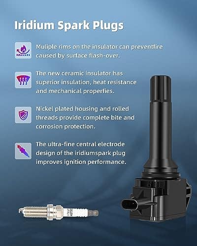 4. Bobina y Bujía Mejoradas: ¡15% más de energía que las bobinas OE y mejora el rendimiento del motor! Las bobinas de encendido proporcionan chispa para su motor. Con el tiempo, las bobinas de encendido y bujías de fábrica fallarán, lo que resultará en un mal rendimiento de gasolina, fallo de encendido, vacilación, luces de advertencia del motor (CEL) y VSC. Reemplace las bobinas y bujías juntas para proporcionar un rendimiento superior en arranque en frío y un motor más suave en funcionamiento.