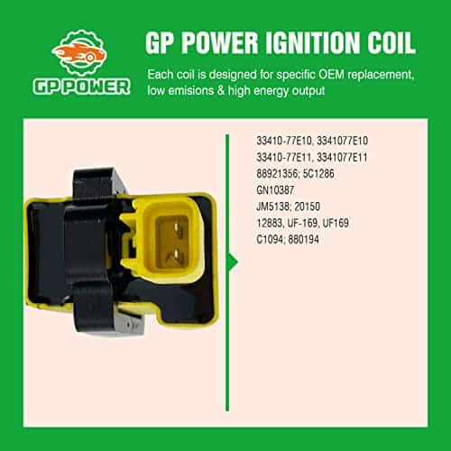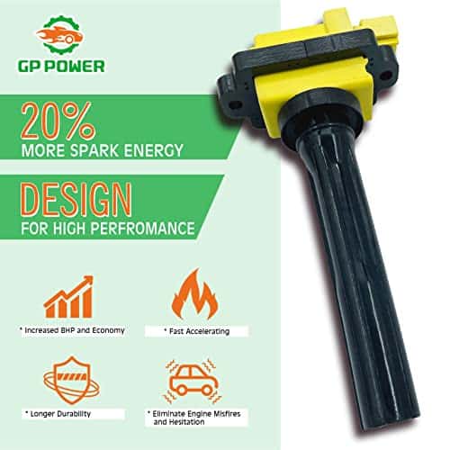 Las bobinas de encendido GP POWER ofrecen una excelente confiabilidad y rendimiento, con reemplazo directo en la ubicación de fábrica y número de parte original. Reducen problemas comunes de las bobinas de encendido como arranque dificultoso, tiempo de arranque largo, fallos de encendido, falta de potencia, cambios inconsistentes de marcha, ensuciamiento de bujías, fallo prematuro del convertidor catalítico, mala economía de combustible e iluminación del testigo de motor. Incluye garantía limitada de 1 año. Por favor, verifique la compatibilidad con su vehículo antes de la compra.