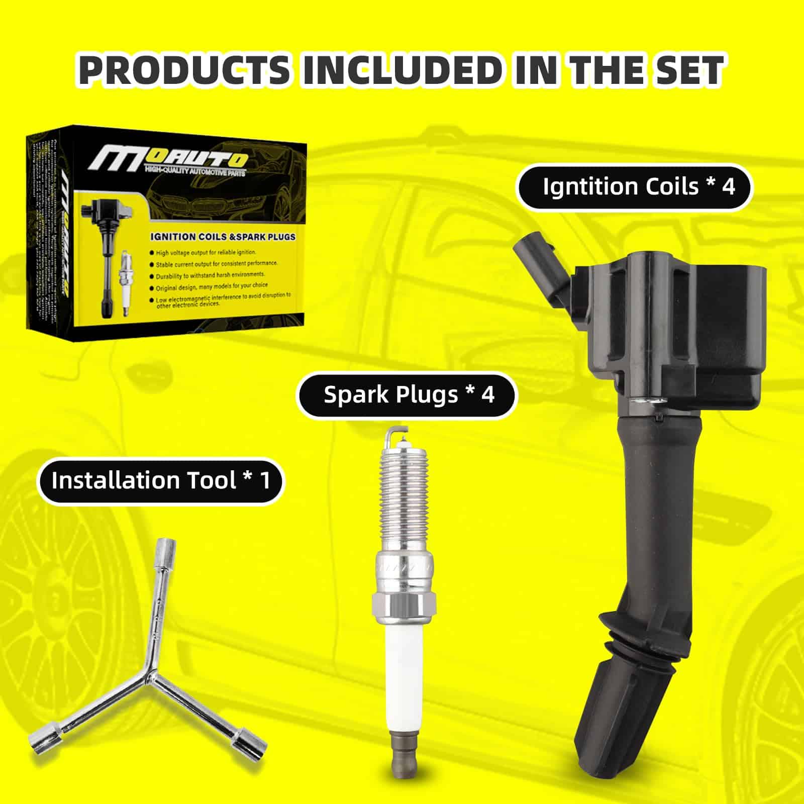 4. Paquete completo: El paquete incluye todo lo que necesitas para que tu vehículo funcione sin problemas: un juego de 4 bobinas de encendido, 4 bujías de iridio de alta calidad y una herramienta de extracción de bobinas de encendido. Con este completo juego, puedes confiar en que tu vehículo funcionará al máximo de su capacidad.