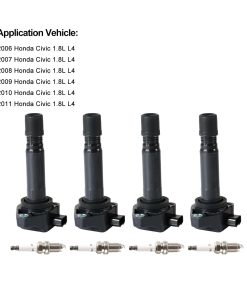 Especificaciones: Número de parte de la bobina de encendido: UF-582, UF582, 30520RNAA01 Número de parte de la bujía de iridio: 9807B561BW, 9807B561BWA0, XP5224, IZFR6K11S Material de la bujía de iridio Cantidad de cables de la bobina de encendido: 3 Pines Temperatura de funcionamiento: -40 +125 De acuerdo con las especificaciones originales de fábrica y los estándares OE, es una combinación perfecta para el coche original. Y nuestras bujías de iridio están construidas según los estándares ISO y TS16949, con una mejor estabilidad en ralenti del motor y un rendimiento más suave. Aceleración excepcional, eficiencia de combustible y durabilidad. No esperes menos una vez que la bobina de encendido y las bujías de iridio se conecten a tu motor. Reemplaza las bobinas de encendido defectuosas y reduce problemas comunes de las bobinas de encendido como arranque duro/no, tiempos de arranque largos, fallos de encendido, falta de potencia, cambios de marchas irregulares, mala economía de combustible e iluminación del indicador de chequeo del motor. Modelos aplicables: (La compatibilidad es solo de referencia. ¡Por favor compárala con la tuya original antes de comprar! ) Para Honda Civic 2006-2011 L4 1.8L Gasolina Paquete incluido: 4Pcs Conjunto de bobinas de encendido + 4Pcs Bujías de Iridio Nota: Por favor utiliza el VIN para obtener el número de parte original (OE). Asegúrate de que el número de modelo, número de parte y la foto sean iguales que los tuyos antes de ordenar. Recomendamos instalación profesional si no estás familiarizado con ello. Ten cuidado al instalar y probar, de lo contrario, causará daños a las piezas. La comunicación es la mejor manera de resolver problemas. Si tienes algún problema después de comprar, por favor contáctanos a tiempo, antes de abrir un retorno o caso. Nuestras Ventajas: DEEGOOLY tiene un equipo técnico profesional, que ofrece productos de alta calidad y excelente servicio postventa.