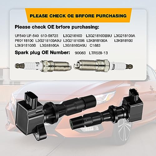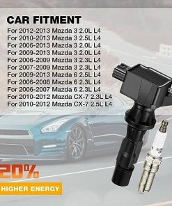 Bobina de encendido UF540 y bujía de iridio 90083 para Mazda 3 2007-2013, Mazda 6 2006-2013, Mazda CX-7 2010-2012. Fabricadas con material de acero de silicio, caucho importado de Japón y alambre barnizado importado de Alemania. Garantía de 12 meses y servicio postventa de por vida. Cambie a uno nuevo con confianza.