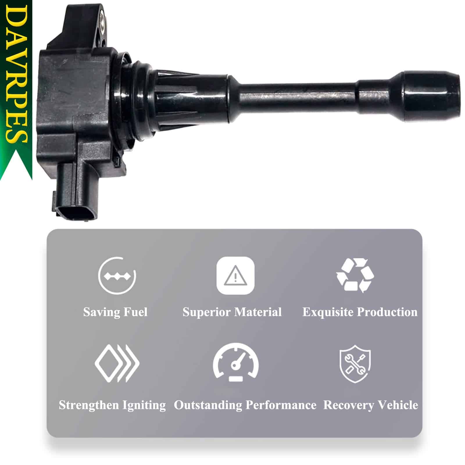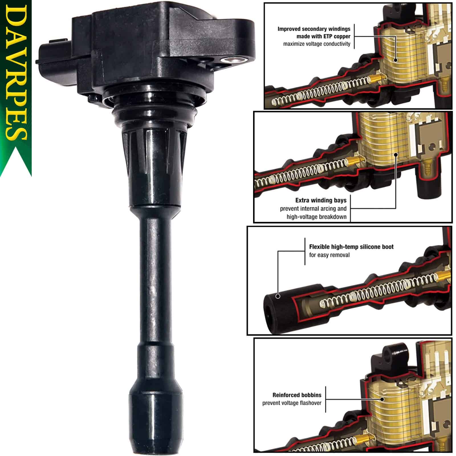 3. Período de garantía de 2 años: El neodimio en el núcleo produce el campo magnético más fuerte y produce la salida de alto voltaje más alta a todas las velocidades. Su carrete reforzado evita la descarga de voltaje, extendiendo así la vida útil. El compuesto altamente resistente al calor se utiliza en la funda de la bobina en la bujía para resistir el estrés térmico y tener una mayor durabilidad.