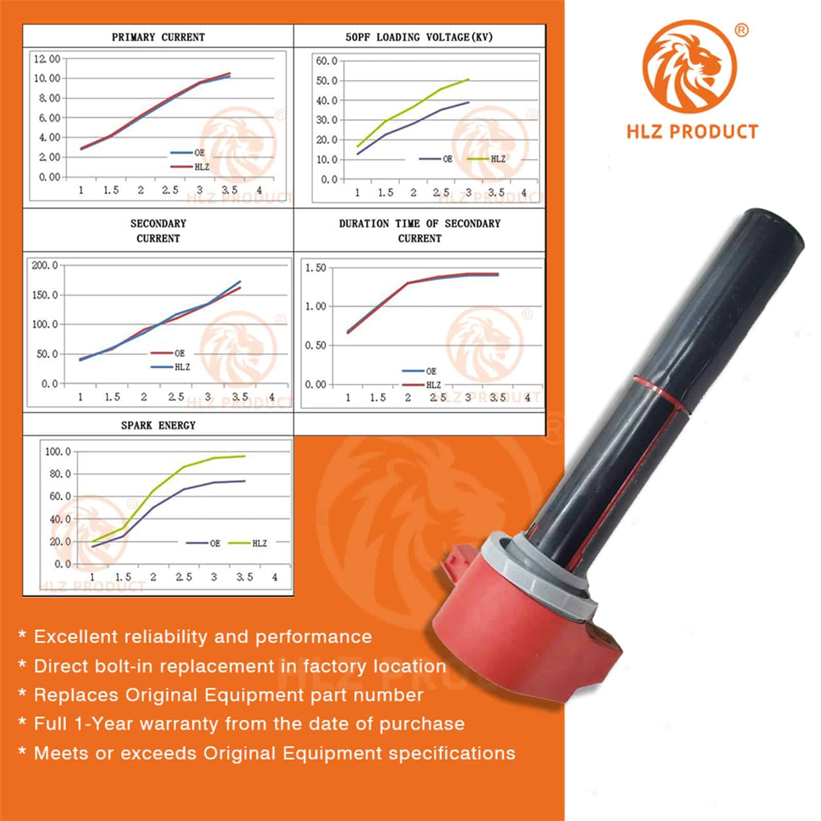 HLZ PRODUCT Ignition coils son siempre hechas con cobre de alta calidad, diseñadas para aplicaciones específicas y probadas en carretera. Por favor revise la información cuidadosamente para asegurarse de que esta parte sea compatible con su vehículo. HLZ PRODUCT utiliza la última tecnología y componentes OE para ofrecer una calidad excepcional que supera los requerimientos OE. Mejora un 15% más de energía que las bobinas OE. Nuestros paquetes de bobinas de ignición pueden encontrarse fácilmente en ambos lados del motor dentro del vano del motor, instalables en minutos. Podrá experimentar arranques de motor más consistentes y suaves al instante. Excelente fiabilidad y rendimiento, reemplazo directo en la ubicación de fábrica, reemplaza el número de parte del equipo original. Reduce problemas comunes de bobinas de ignición como: arranque difícil o nulo, tiempo de arranque largo, fallos de encendido, falta de potencia, cambios inconsistentes de transmisión, acumulación de depósito en bujías, falla prematura del convertidor catalítico, mala economía de combustible, encendido de la luz del motor. Garantía limitada de 1 año – Por favor, verifique si esta parte es compatible con su vehículo.