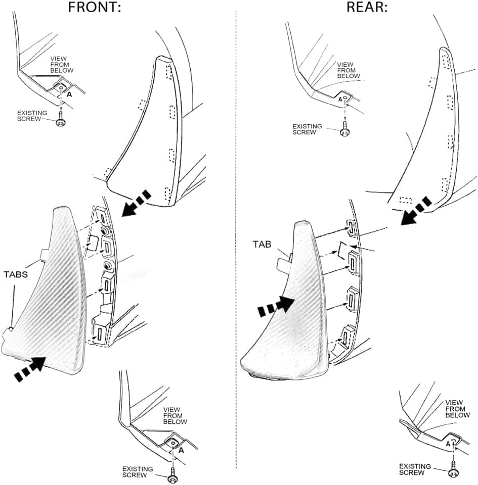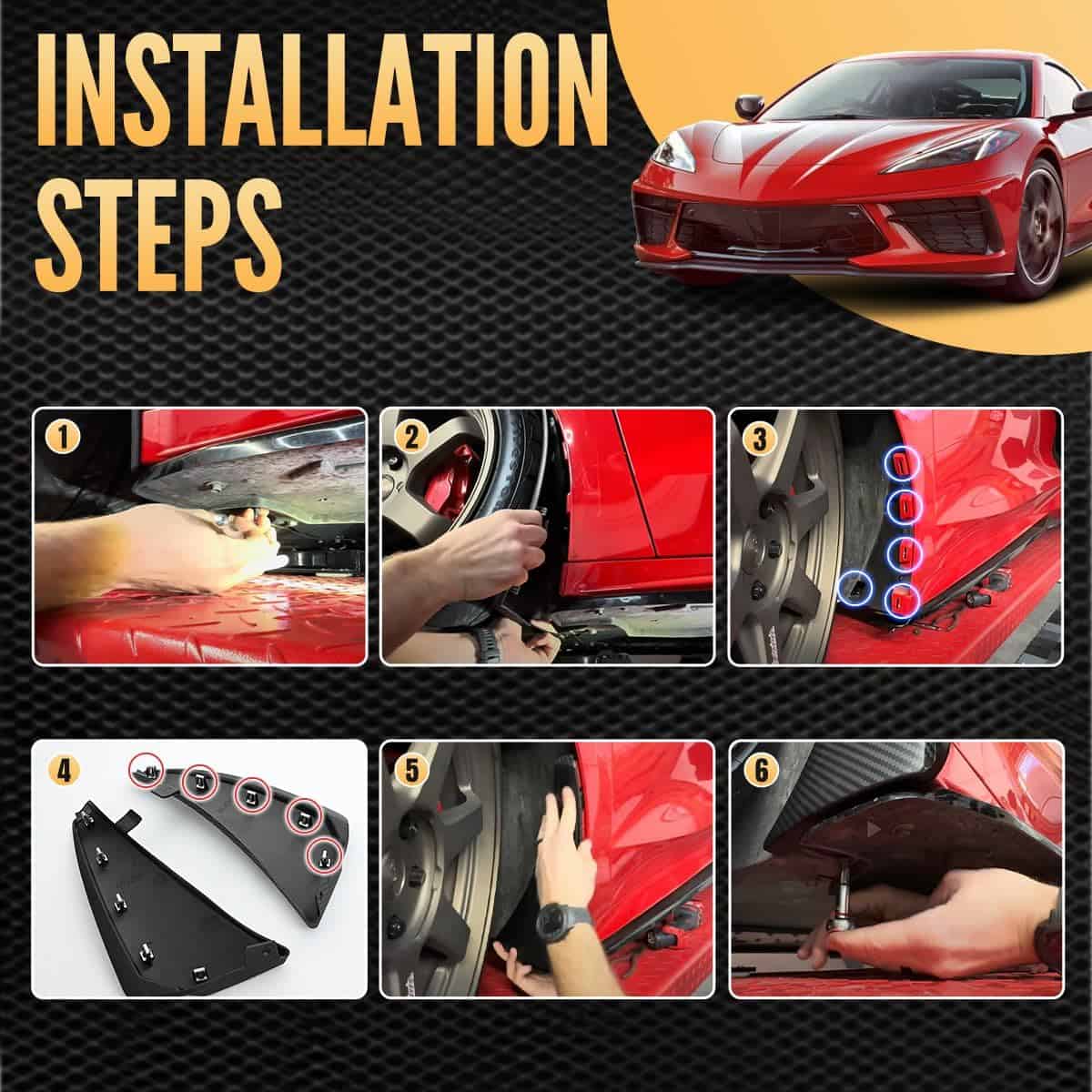 Conjunto de cuatro guardabarros delanteros y traseros compatibles con Corvette C8 Stingray Z51 2020-2024, para Corvette C8 convertible/HTC. No compatible con Corvette C8 Z06&E-ray 2023+. Diseñados para proteger las partes inferiores de tu C8 de diversos elementos y reducir la necesidad de lavados y pinturas. Hechos de ABS de alta calidad y diseñados para adaptarse perfectamente a tu C8, con un diseño de textura única y una superficie de patrón de fibra de carbono. Fáciles de instalar, sin necesidad de perforar. Proporcionan la máxima cobertura de neumáticos y protección, mejoran la aerodinámica y agregan un toque de estilo a tu vehículo. Repuestos para el número de pieza OEM 84263453 y 84263457.