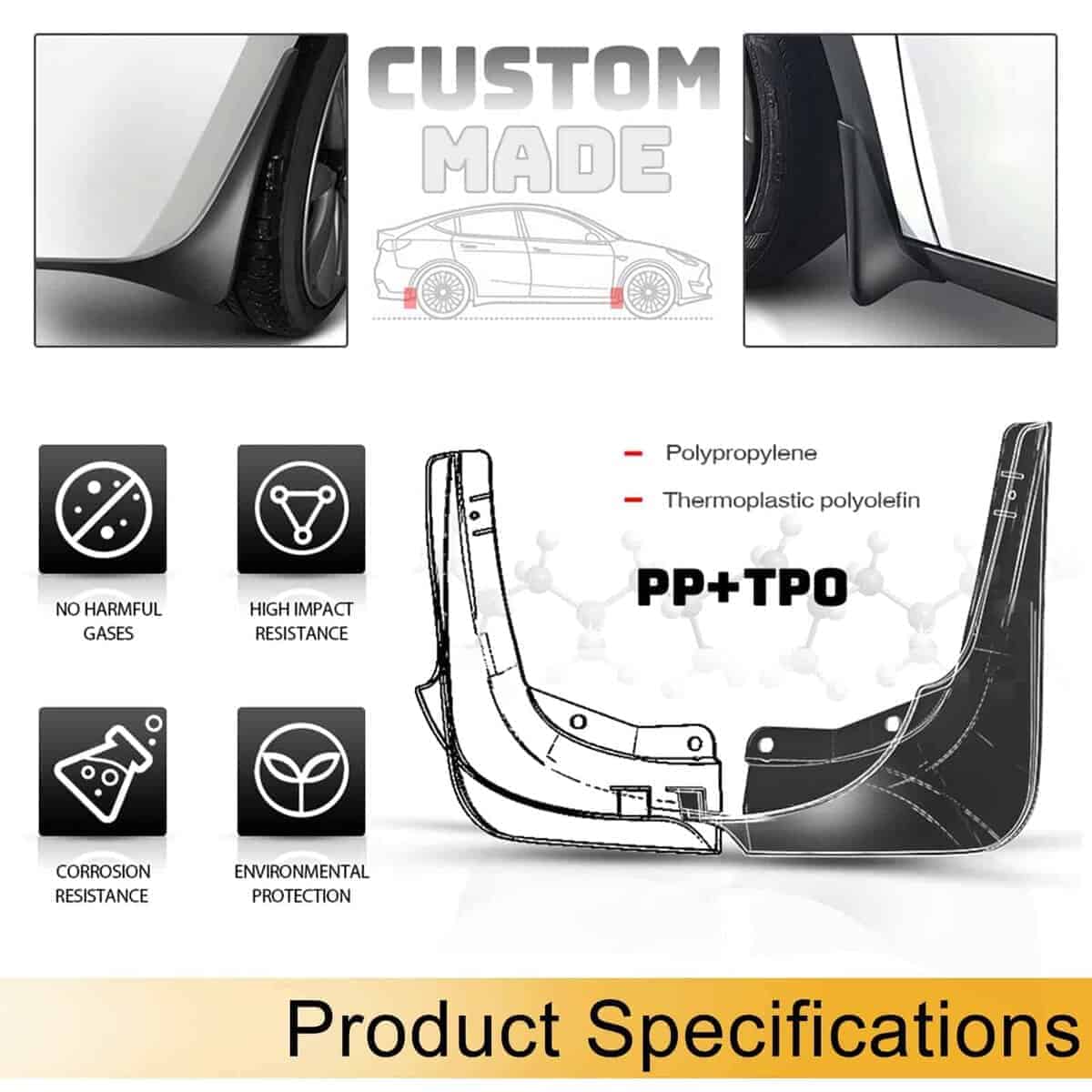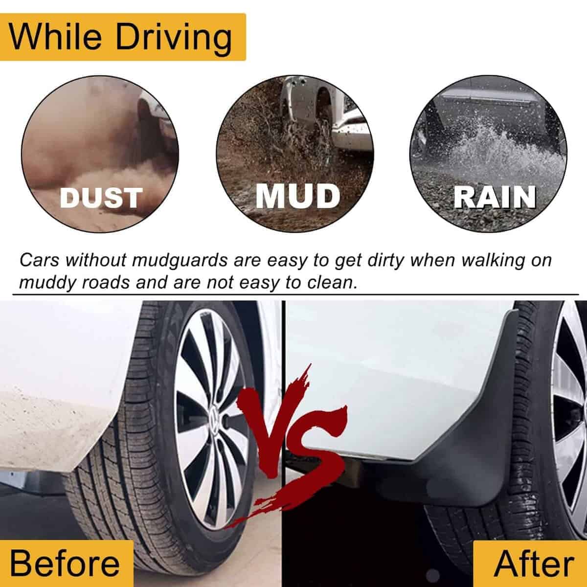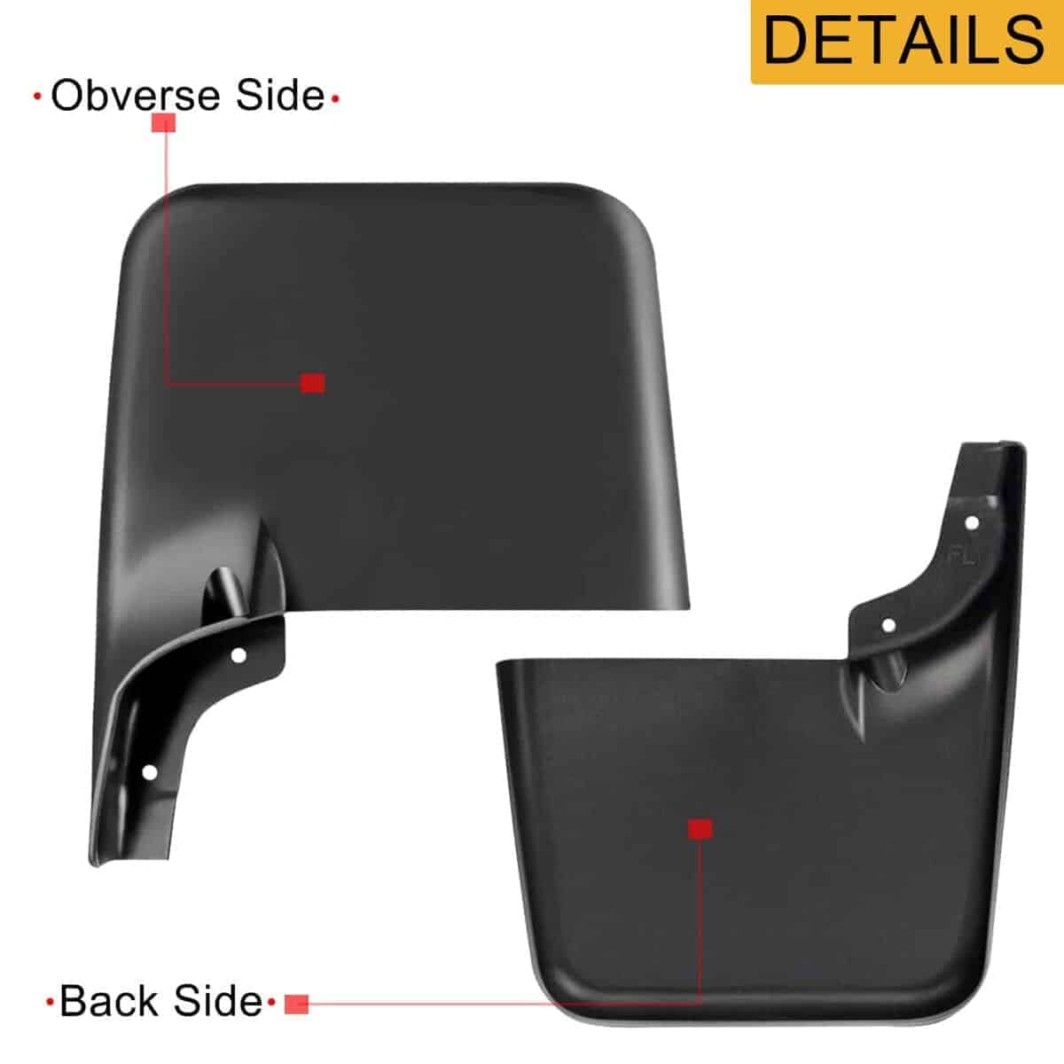 4. Qué Obtendrás: 4 guardabarros detrás de la rueda delantera y trasera, y vienen con accesorios de guardabarros. El diseño contorneado de los guardabarros para coches complementa las líneas del vehículo y su construcción de plástico negro resistente a la rotura.