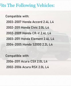 El conjunto incluye 4 bobinas de encendido de calidad superior UF311 30520-PNA-007 y 4 bujías de iridio 92213, compatibles con una amplia gama de modelos de Honda y Acura. La interfaz muestra algunos modelos de autos, pero para ver todos los modelos, haga clic en la parte superior de la interfaz «asegúrese de que esto encaje». El conjunto es compatible con modelos populares como Accord, Civic, CR-V, Element, RSX y más. Además, proporcionamos una garantía de 1 año y elimimamos los problemas frecuentes de las bobinas de encendido comercialmente disponibles. Si tiene algún problema de calidad con el producto, no dude en contactarnos.
