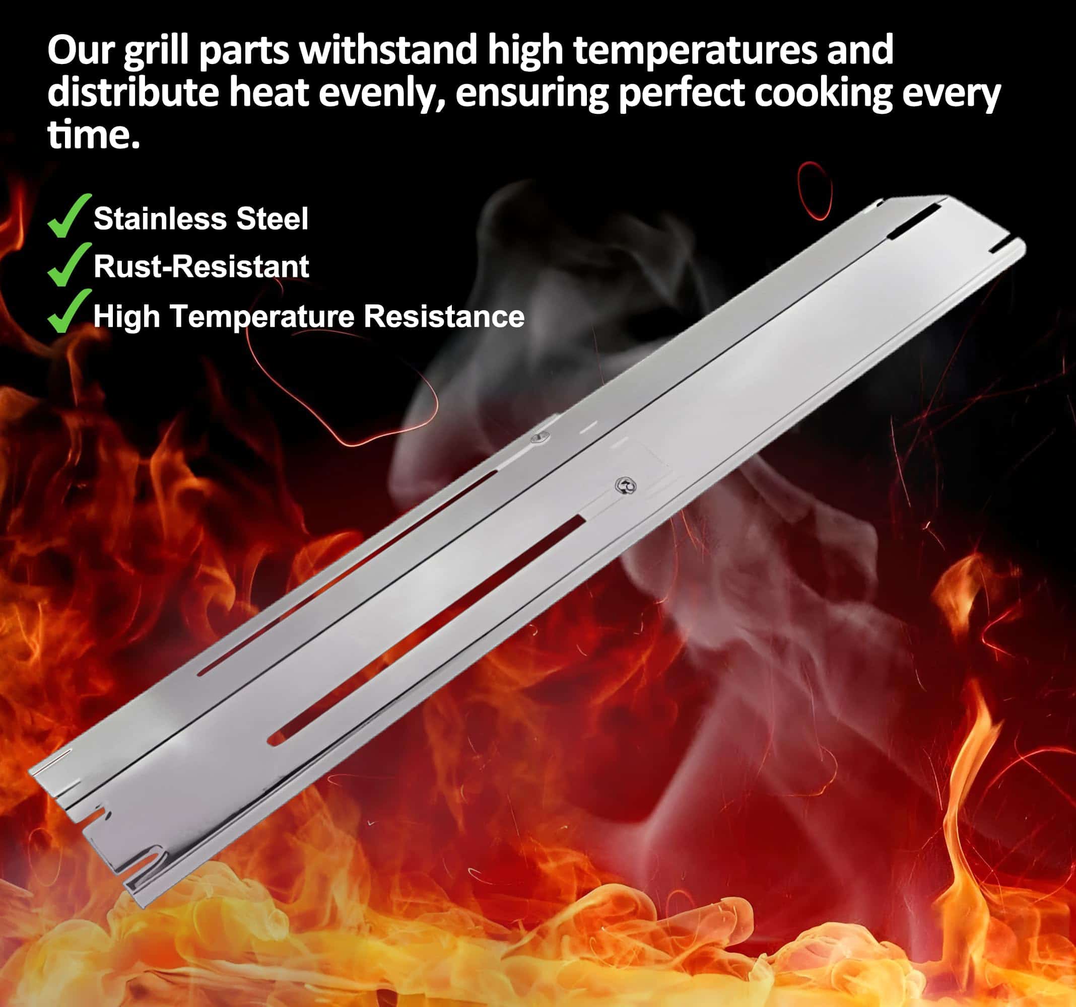 Nuestros escudos térmicos y quemadores están fabricados con acero inoxidable duradero, ofreciendo un espesor ideal para un rendimiento de cocción óptimo. Con características ajustables, estas piezas están diseñadas para adaptarse a una variedad de parrillas de 4 quemadores, garantizando versatilidad y comodidad.