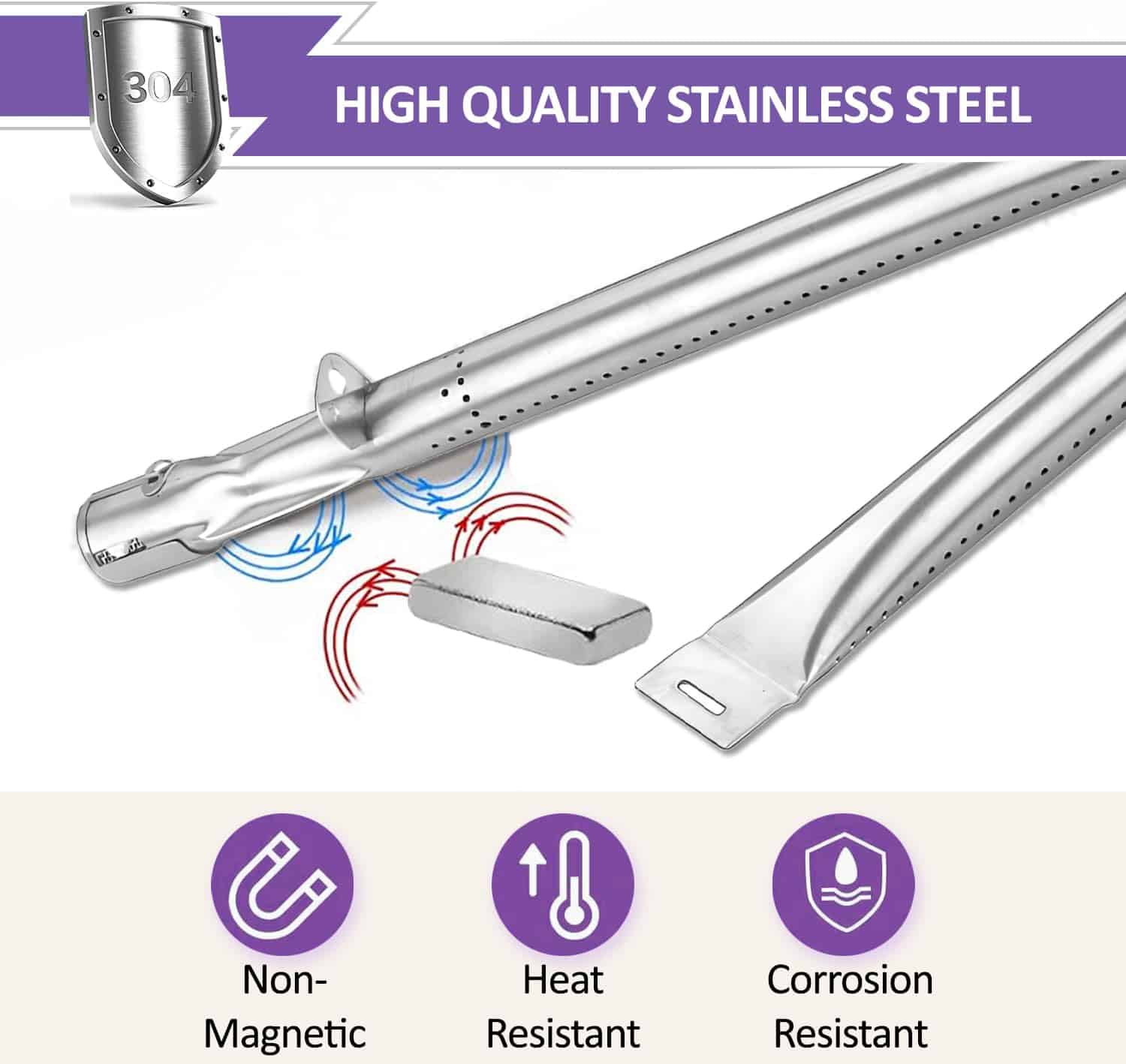 Actualice su experiencia de parrilla con este Set de 4 Quemadores de Repuesto para Parrillas de Gas. Diga adiós a sus viejos quemadores oxidados y dé la bienvenida a la durabilidad y eficiencia del acero inoxidable de alta calidad. Diseñados para adaptarse a varios modelos incluidos de Backyard Grill, BHG, Dyna Glo, Uniflame, Tera Gear y más, estos quemadores de parrilla de repuesto aseguran un ajuste perfecto para su parrilla.