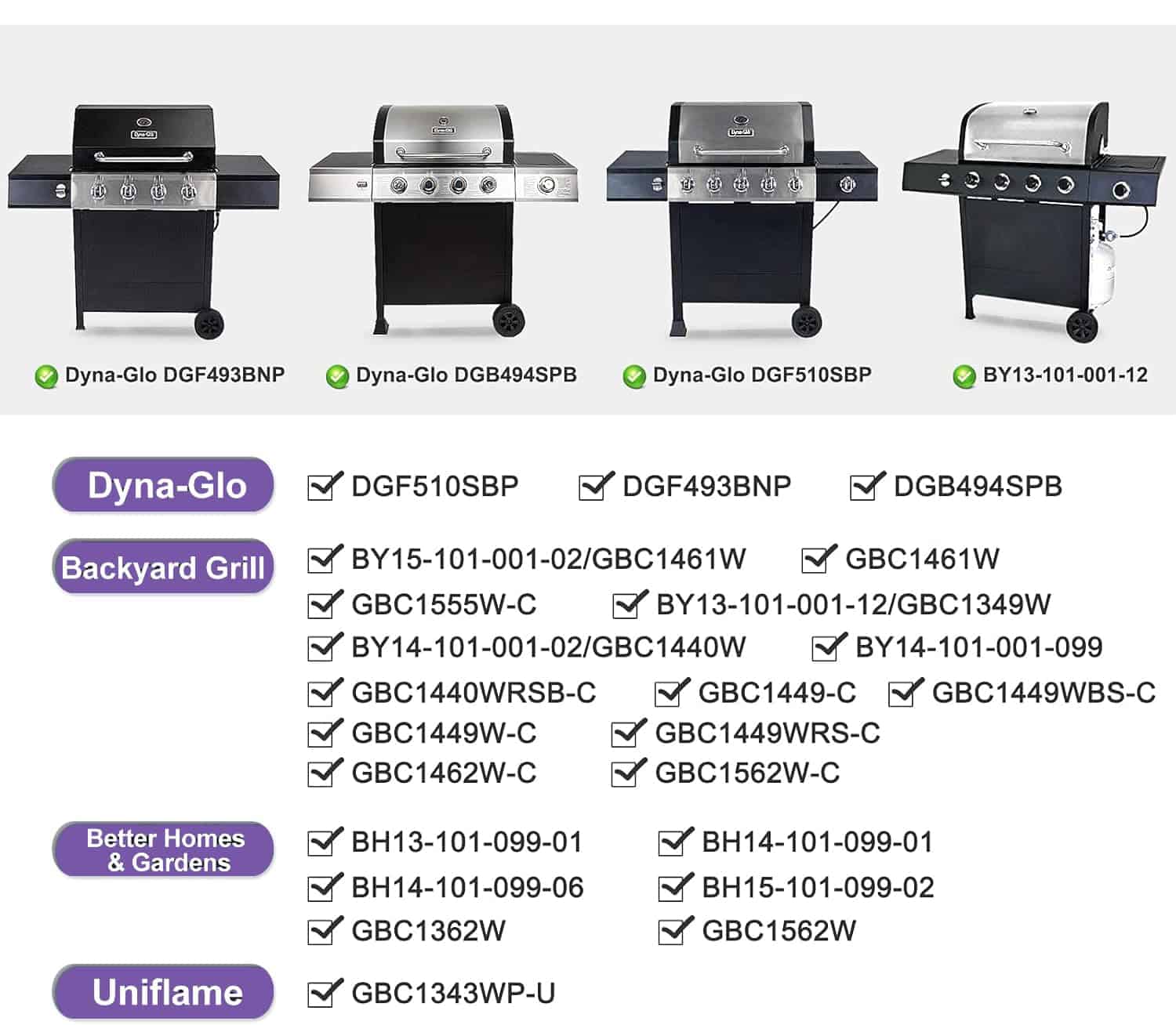 También es compatible con muchos otros modelos de parrillas que requieren quemadores de este tamaño.