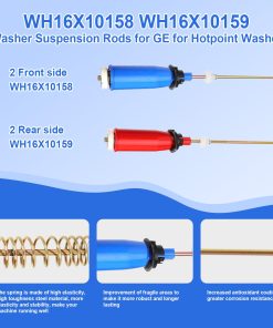Conjunto de 4 resortes de varilla de suspensión para lavadora, compatible con modelos GE y Hotpoint GTWN4250D0WS GTWN4250D1WS GTWP1800D0WW GCWP1800D1WW GLWN2800D1WS GTWN2800D0WW GTWN2800D1WW GTWN2800D2WW, entre otros. Los resortes de varilla de suspensión WH16X10158 y WH16X10159 reemplazan los números de parte PS3654190, PS3654191, AP5632406, 2754602, AP5632455, EAP3654190, EAP3654191, 2754603. Fabricados con material de acero de alta calidad y recubiertos con un recubrimiento anticorrosión para mejorar su resistencia a la corrosión y prolongar la vida útil de la varilla WH16X10159. Estos resortes adoptan un resorte de amortiguación de alta elasticidad para reducir eficazmente el ruido emitido por la lavadora mientras trabaja. Proporcionan apoyo y estabilidad al tambor, restaurando el rendimiento de la lavadora y asegurando su funcionamiento sin ruidos molestos. Si hay algún problema de calidad con nuestros productos o si el producto no se ajusta, nuestro equipo profesional está disponible las 24 horas para ayudarlo a resolver cualquier inconveniente, porque su satisfacción es nuestra prioridad.