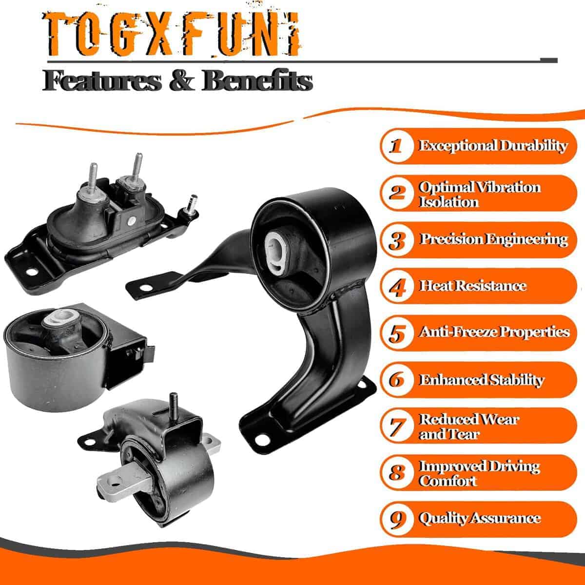 5. Seguridad y Estabilidad: La condición adecuada de los soportes de motor es esencial para la seguridad al conducir. Ayudan a garantizar que el vehículo permanezca estable y ofrezca una buena maniobrabilidad, lo cual es vital para evitar accidentes y proteger a los pasajeros