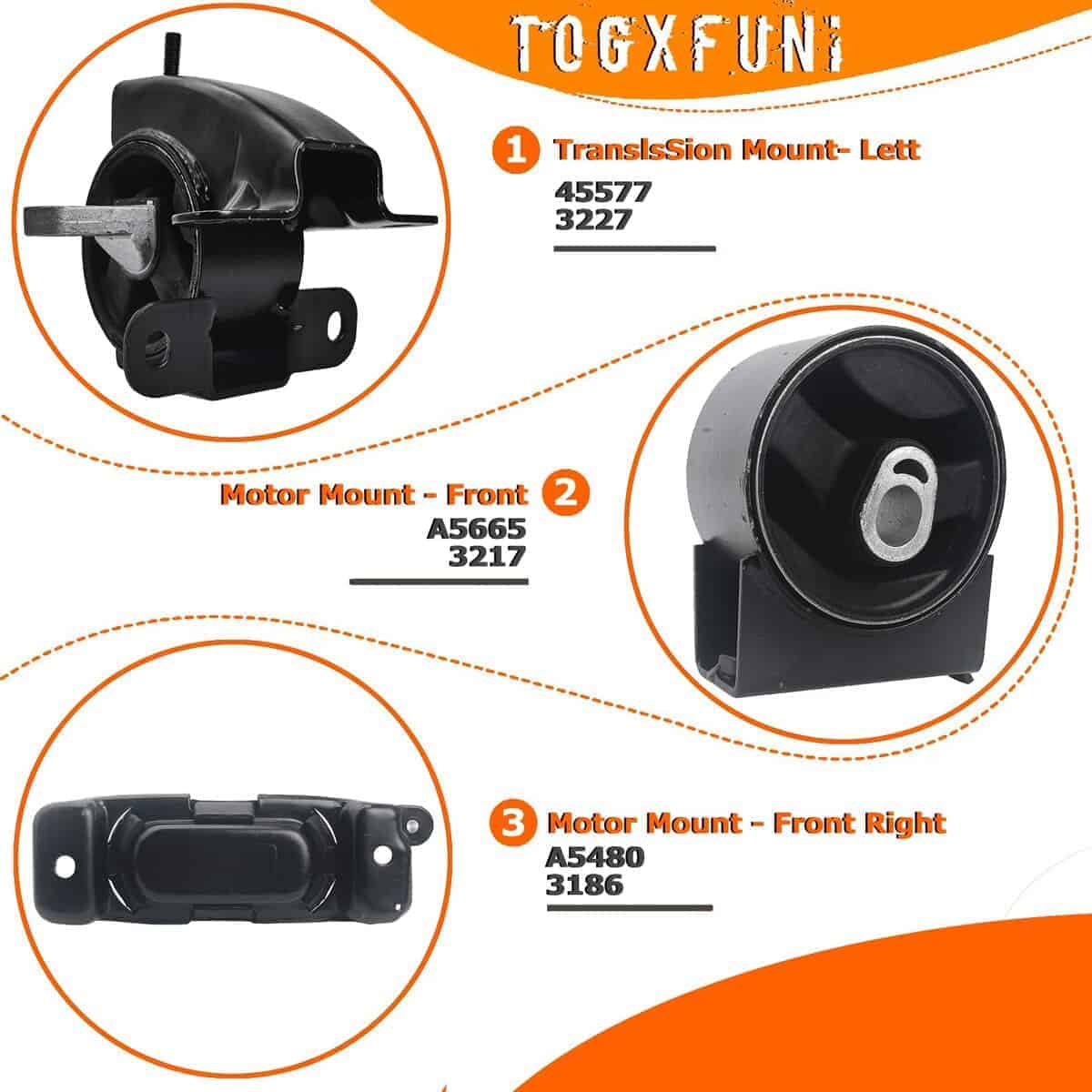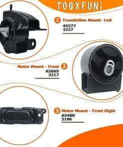 4. Piezas incluidas en el kit de conjunto de soportes de motor: Soporte de motor delantero A5665 / Emt3217 Soporte de motor delantero derecho: A5480 / Emt3186 Soporte de motor trasero: A5589 / Emt3256 Soporte de transmisión: A5577 / Emt3227.