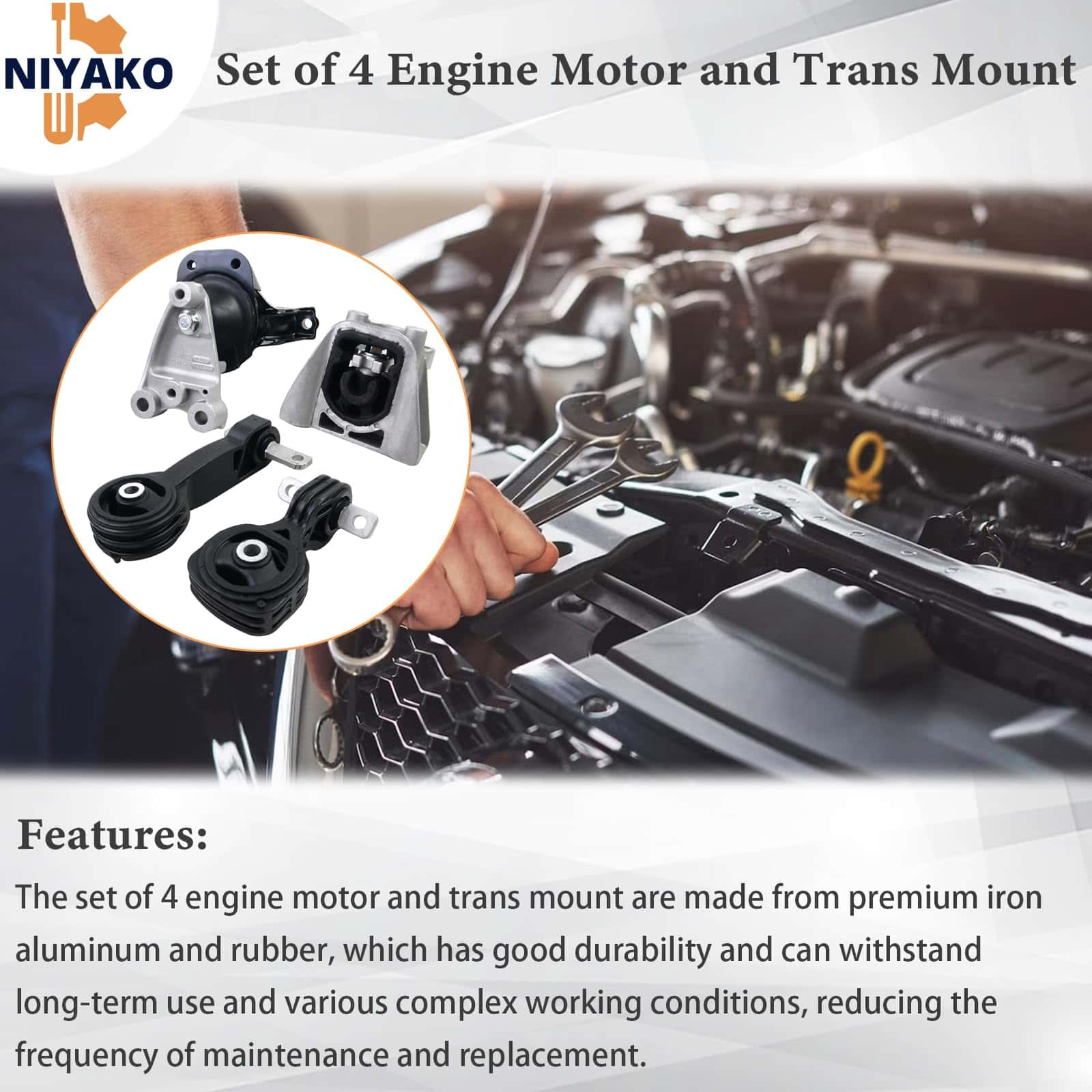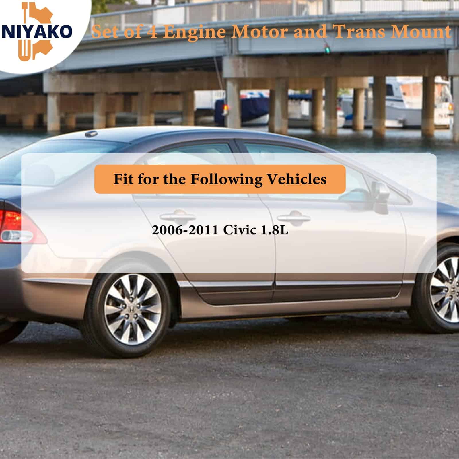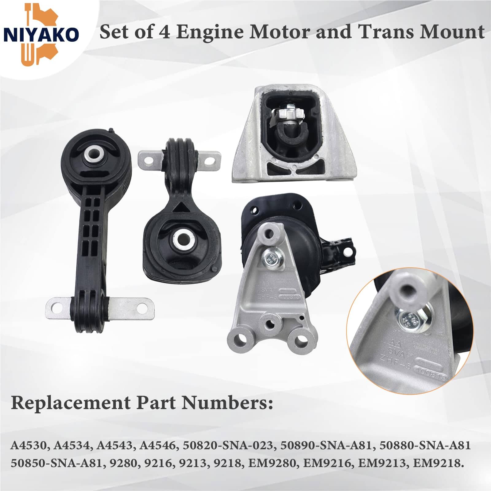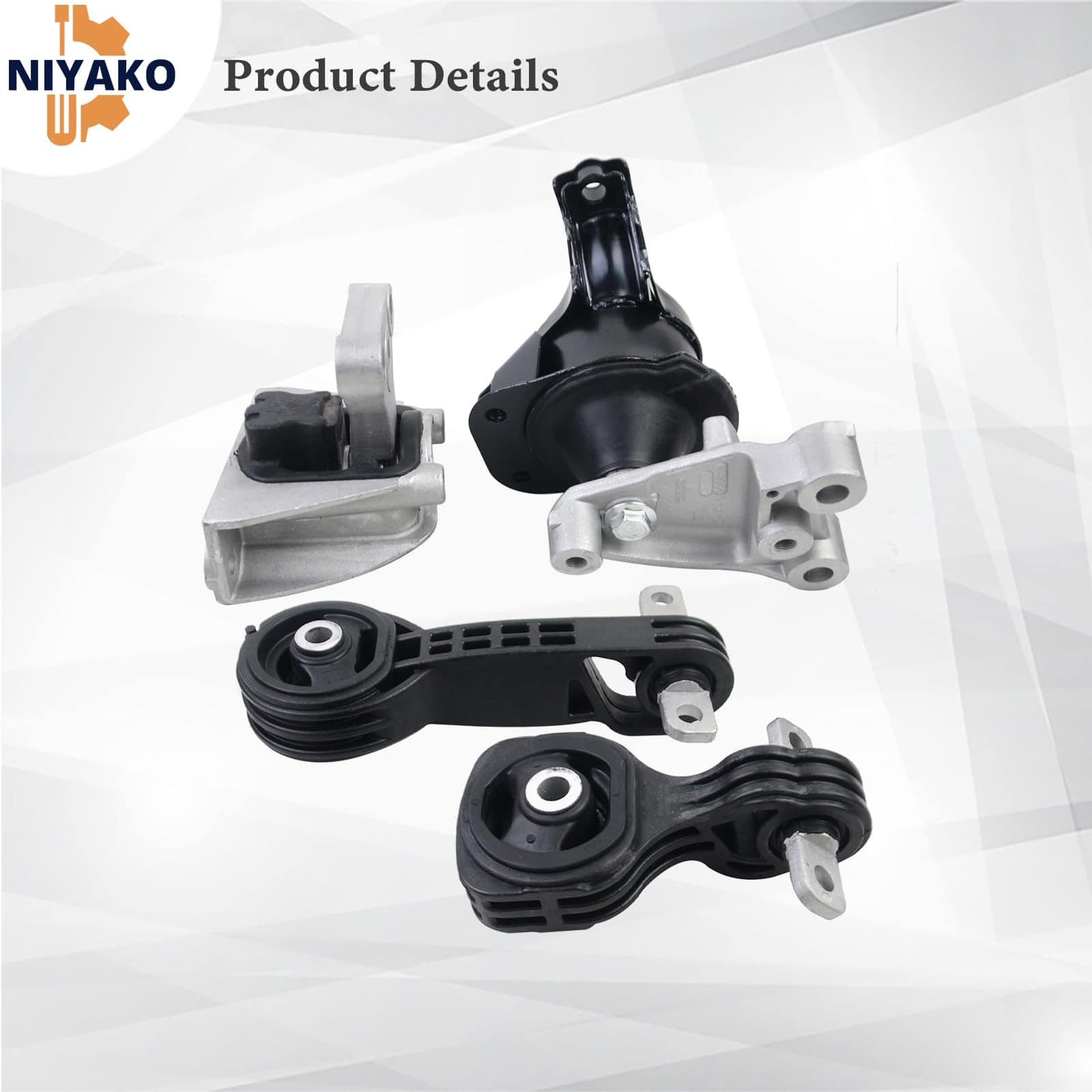 Conjunto de 4 soportes de motor y transmisión Niyako de repuesto para Honda Civic 1.8L 2006-2011. Este conjunto incluye los números de parte A4530, A4534, A4543 y A4546, así como otros números de parte de reemplazo alternativos. Niyako se destaca por ofrecer productos de calidad superior y un rendimiento confiable para mantener su vehículo en óptimas condiciones. No dude en comunicarse con nuestro equipo de servicio al cliente si tiene alguna pregunta adicional o necesita asistencia. Gracias por elegir la marca Niyako, ¡esperamos poder seguir sirviéndole en el futuro!