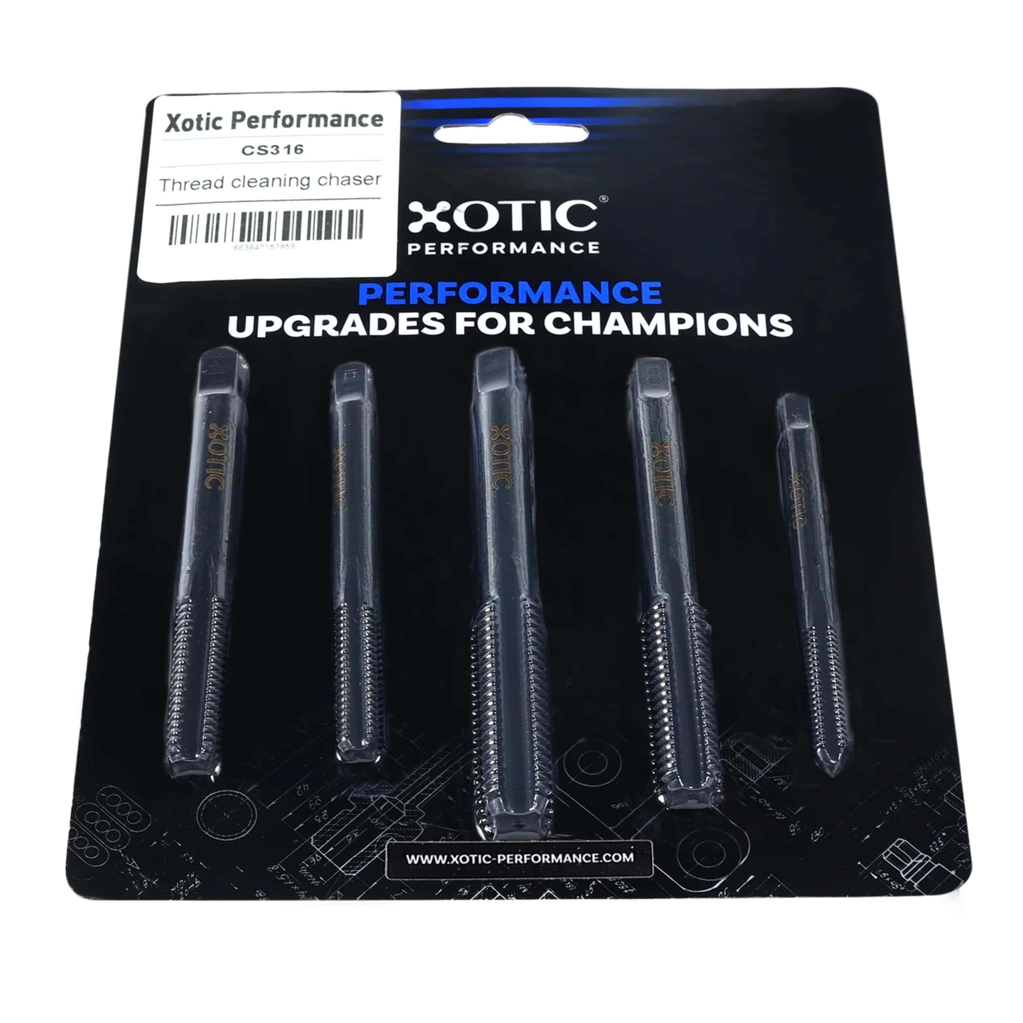 Nuestro conjunto de 5 herramientas para limpiar roscas de Xotic Performance está diseñado para proporcionar una solución eficaz en la restauración de roscas ligeramente dañadas. Fabricadas con acero de alta velocidad 4241, conocido por su resistencia, resistencia al desgaste y tolerancia al calor excepcionales, estas herramientas son capaces de soportar las tareas más exigentes. Su capacidad de restauración universal de roscas las hace ideales para aplicaciones automotrices, de maquinaria y de bricolaje.