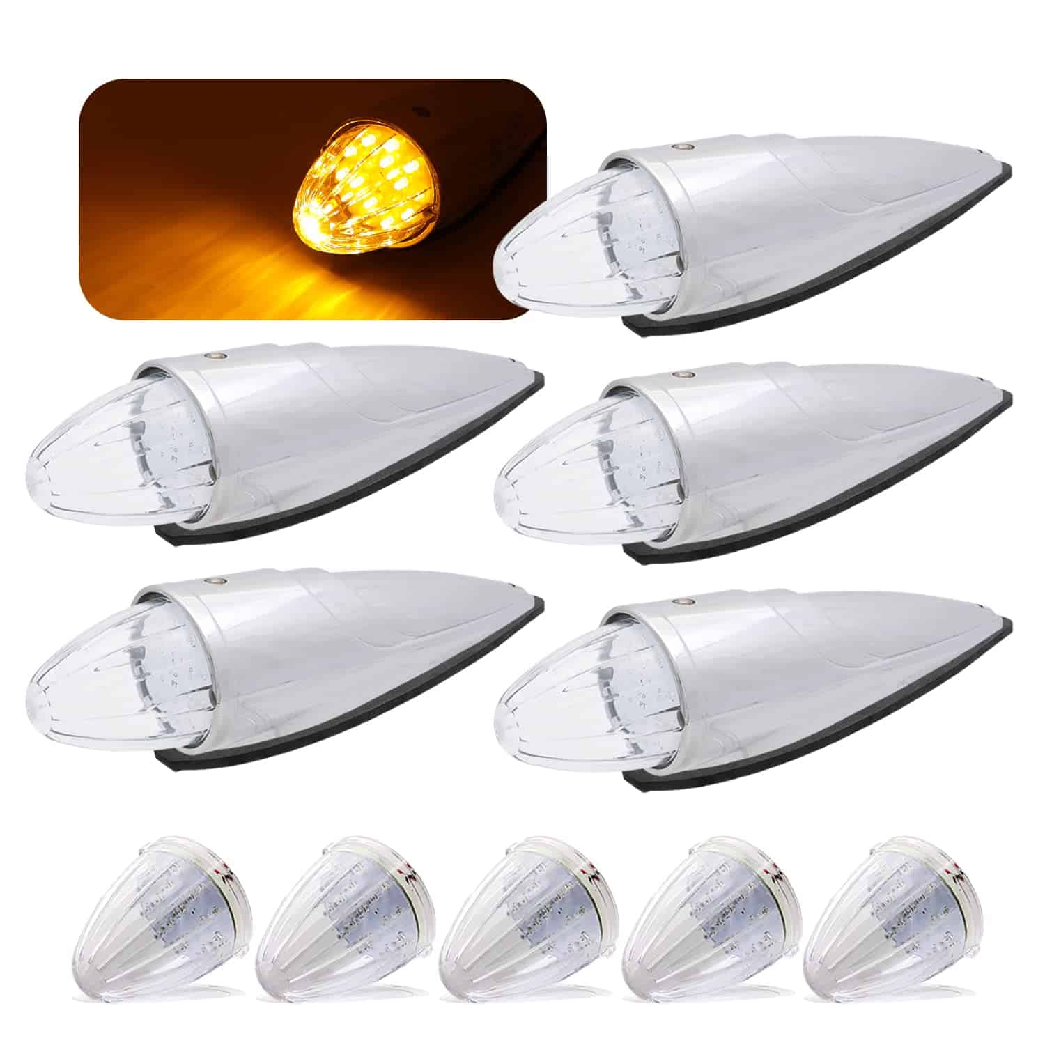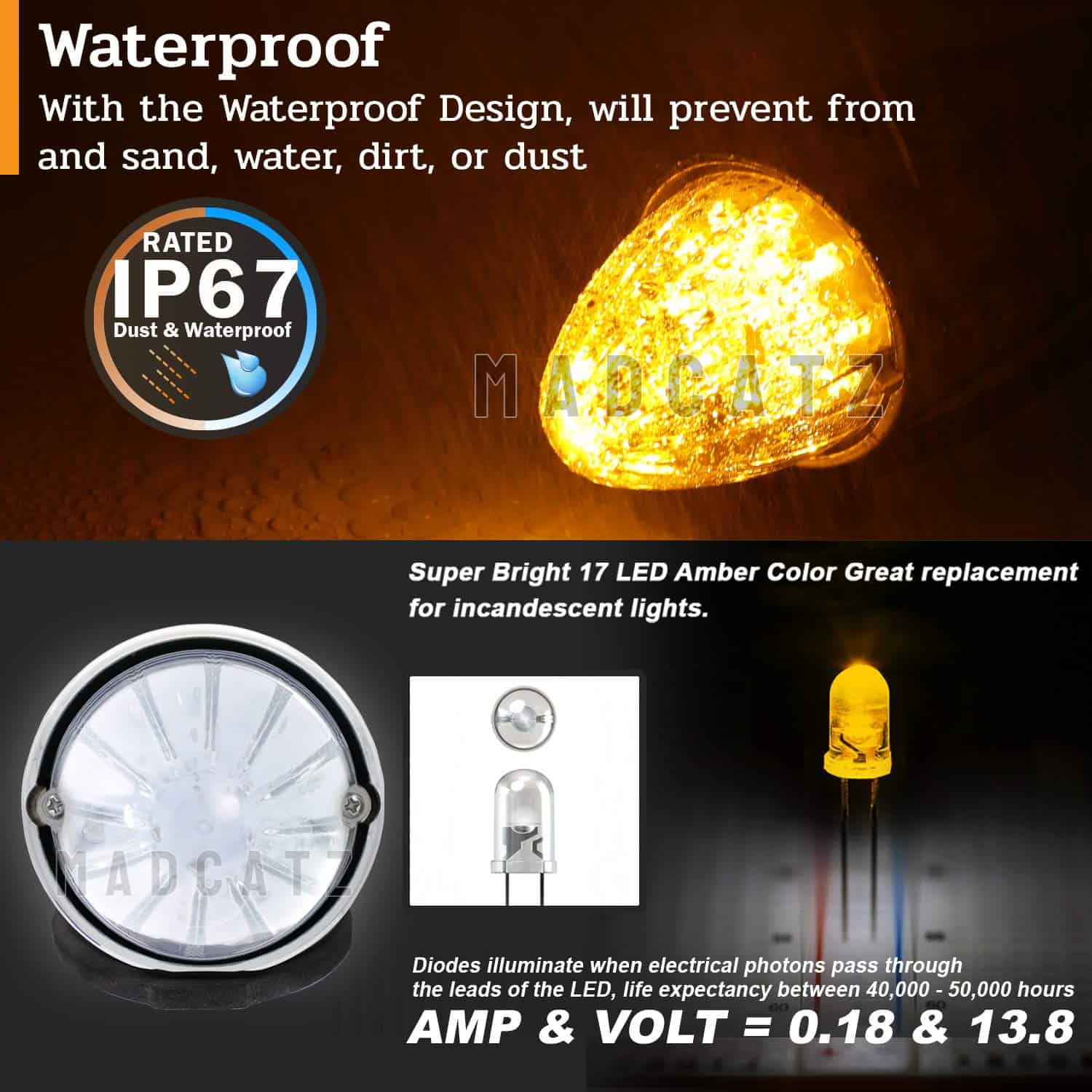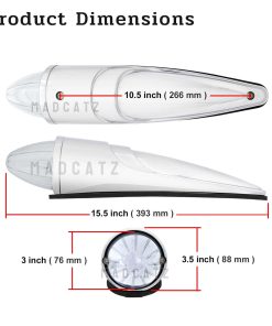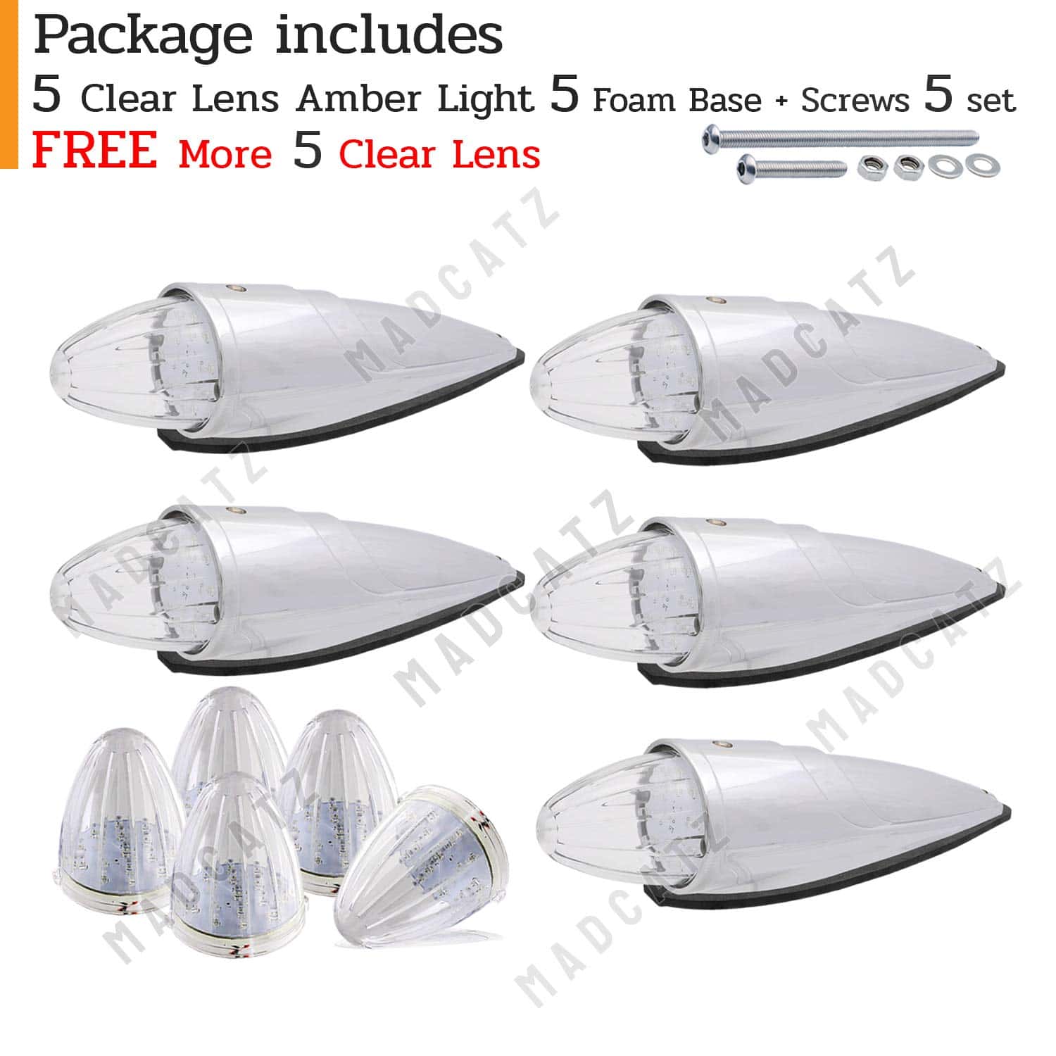 MADCATZ garantiza verdaderamente una garantía de 12 meses para cualquier defecto de fabricación desde la fecha de compra; la garantía permite devolver o reemplazar las luces en caso de defectos del fabricante. El paquete incluye 5 luces de marcador de cabina de color ámbar con lente clara y base cromada con tornillos y almohadillas suaves, además de 5 cubiertas de lente clara adicionales de luz ámbar. Estas luces son ideales para camiones, remolques, tractores, autobuses, botes y otros vehículos únicos. Son resistentes a impactos y menos propensas a dañarse por golpes. Cada LED está conectado directamente y protegido contra los elementos. Consumen menos energía, producen menos calor y son más brillantes y rápidos que las bombillas incandescentes. La tensión de entrada es de 12 voltios. Las medidas totales son de aproximadamente 15.5 x 3.5 x 3.5 pulgadas (L x W x H), y el diámetro entre los agujeros de montaje es de 10.5 pulgadas. Por favor, verifique el tamaño de la luz de marcador de cabina para determinar si encaja antes de hacer el pedido. Dos cables están conectados: el rojo es positivo y el negro es negativo.