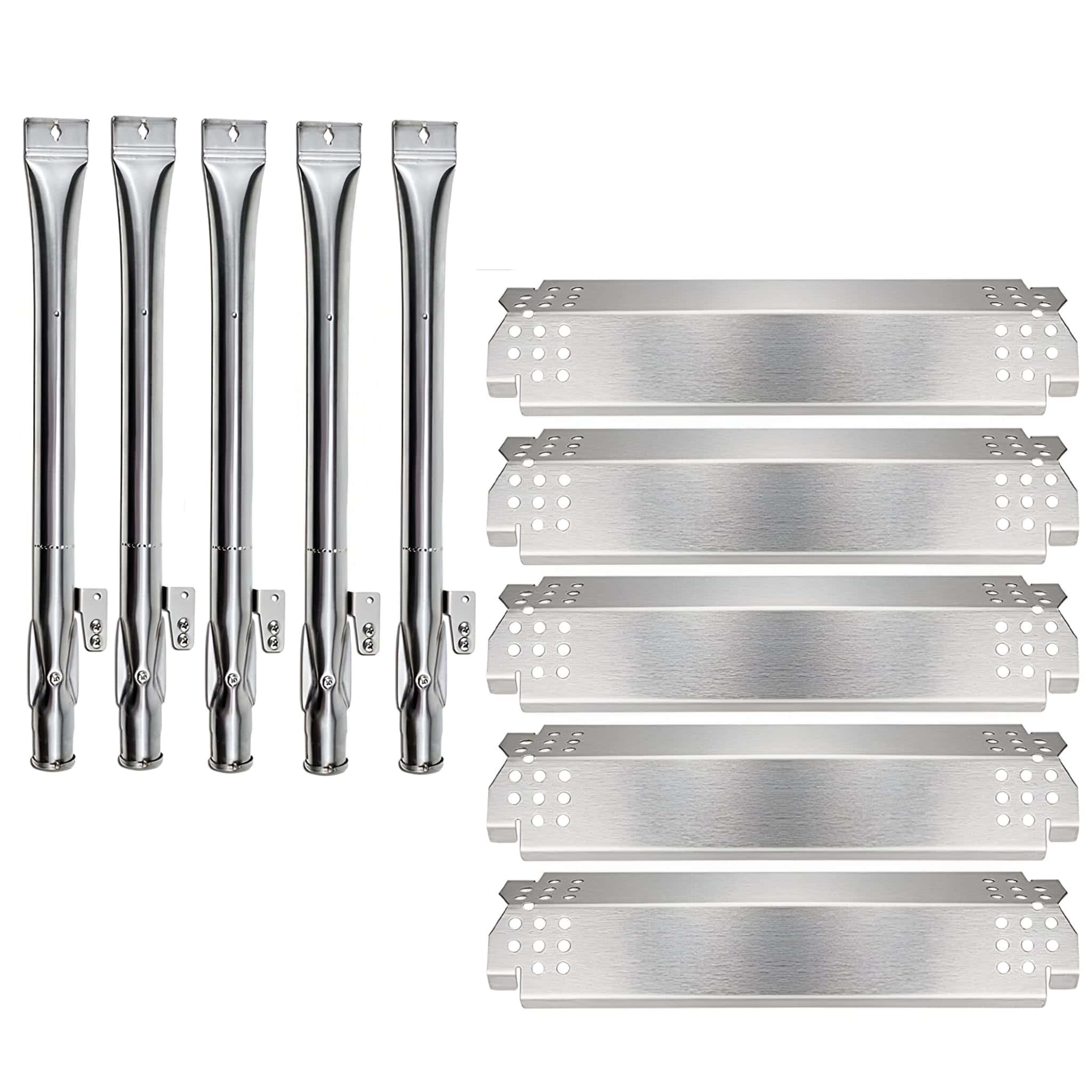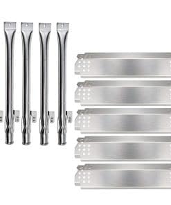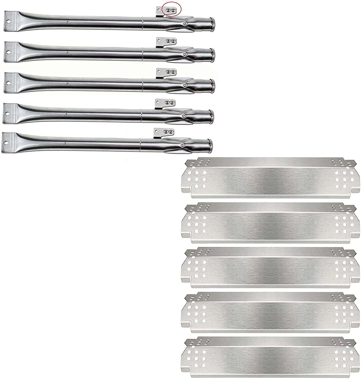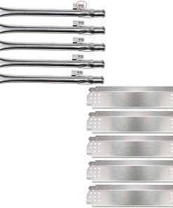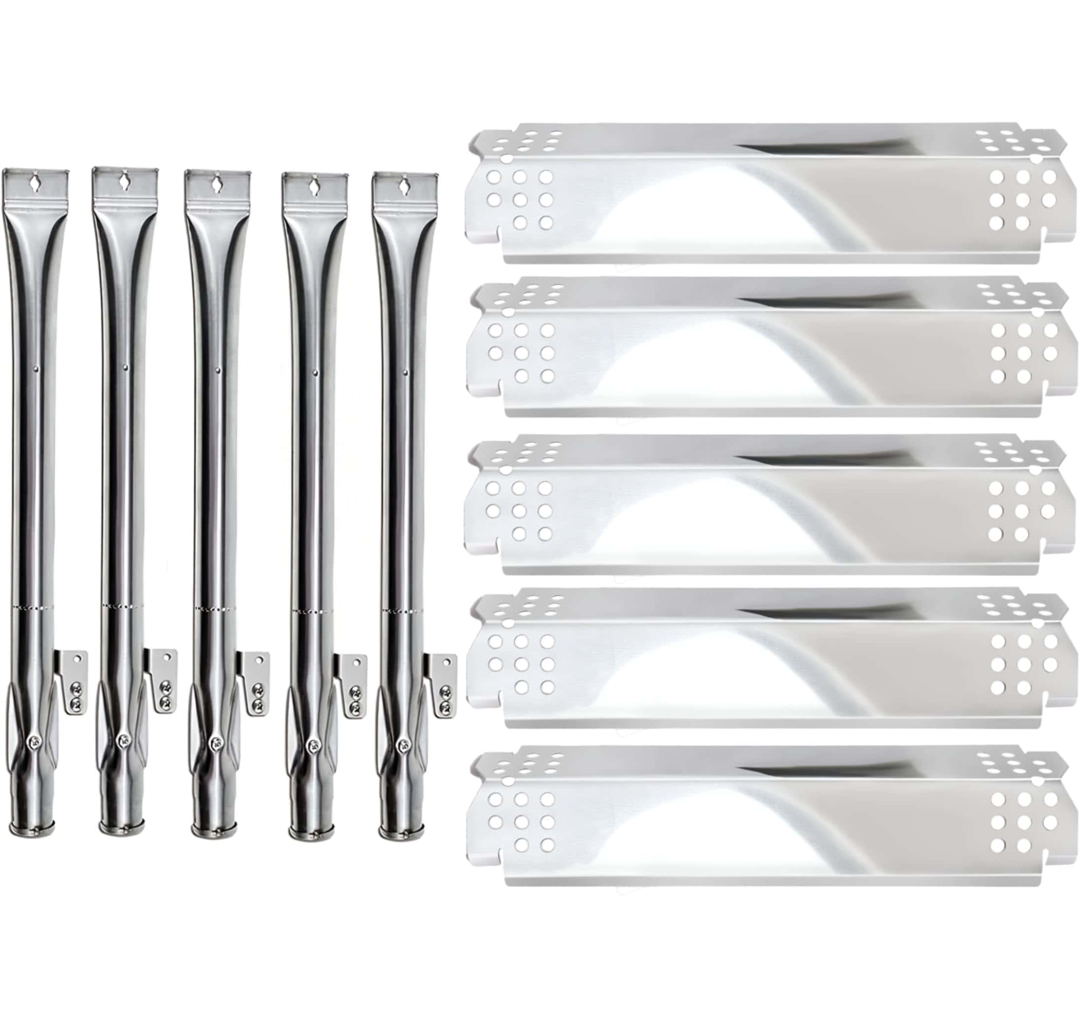 Revise su configuración de parrilla con el Kit de Quemadores de Repuesto y Placas de Calor de Acero Inoxidable, diseñado para modelos Nexgrill y compatible con una variedad de otras marcas, incluidas Members Mark, BBQ Pro, BHG, Backyard Grill y Kitchen Aid. Este kit integral, que incluye 5 quemadores de repuesto y 5 placas de calor, está diseñado para renovar su parrilla.