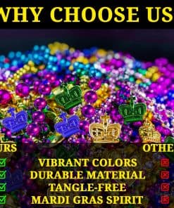 ¡Eleva tu experiencia de Mardi Gras con nuestro Collar de Cuentas de Mardi Gras! Perfecto para agregar un estallido de color y alegría a tus celebraciones, esta colección incluye una deslumbrante variedad de collares de mardi gras en vividos tonos de dorado, plateado, rosa, azul y morado. Diseñados para ser el accesorio de mardi gras definitivo, estos collares ofrecen versatilidad – úsalos como un llamativo collar de cuentas o mézclalos para crear tu propio estilo único. El surtido incluye distintas longitudes y estilos, desde un único collar clásico hasta collares con capas elaboradas, garantizando que encuentres la combinación perfecta para tu outfit. Diseñado para la comodidad, este surtido es ideal para aquellos que buscan collares de mardi gras a granel. ¿Organizando un gran evento o asistiendo a múltiples celebraciones? Tanto si buscas un toque elegante con un collar de cuentas dorado como un ambiente juguetón con tonos vibrantes, estas cuentas elevan sin esfuerzo cualquier conjunto de Mardi Gras