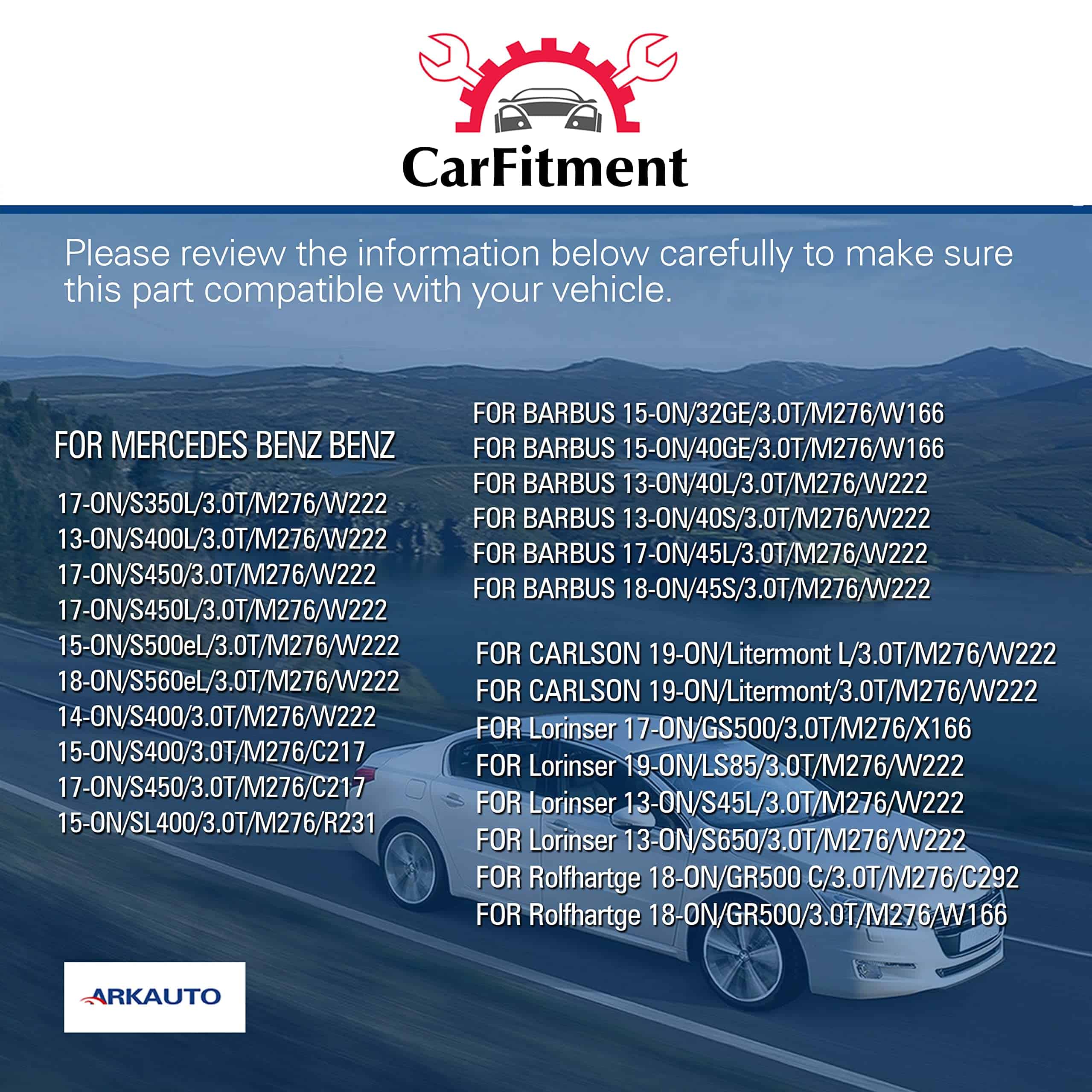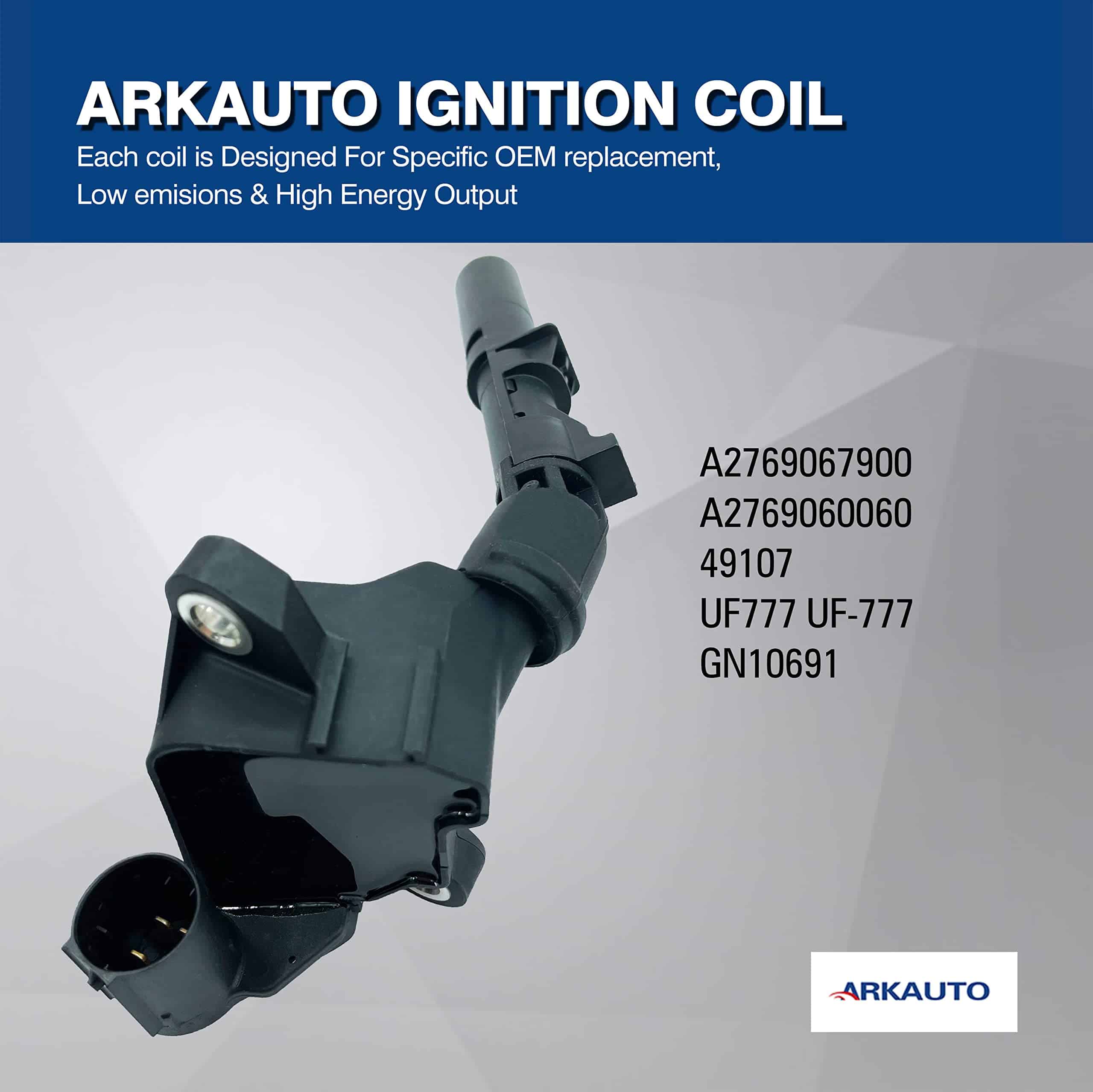 Las bobinas de encendido ARKAUTO siempre están hechas con cobre de alta calidad, diseñadas para aplicaciones específicas y probadas en la carretera. Por favor, revise la información a continuación cuidadosamente para asegurarse de que esta parte sea compatible con su vehículo. VENTAJA – Las bobinas de encendido ARKAUTO están diseñadas según los tipos originales de OE, que pueden reemplazar perfectamente sus bobinas originales defectuosas y funcionar como las originales. Esta bobina es compatible con OE:A2769067900 A2769060060 49107 UF777 UF-777 GN10691. Los compradores deben comparar el OE con el de sus coches originales cuidadosamente antes de pedir para evitar comprar una pieza incorrecta y causar una pérdida innecesaria. Compatible con BARBUS CARLSON Lorinser Rolfhartge MERCEDES BENZ AMG S SL R GLS GLE GL E CLS GLS CALSS 3.0T M276 W222 W205 W203 W212 W251 W166. Reduce problemas comunes de las bobinas de encendido como; dificultad de encendido, tiempo de arranque prolongado, fallos de encendido, falta de potencia, cambios de transmisión inconsistentes, acumulación de residuos en las bujías, falla prematura del convertidor catalítico, mala economía de combustible, iluminación de la luz de check engine. Garantía limitada de 1 año – Por favor, ingrese su vehículo arriba para ver si esta parte es compatible con su vehículo.