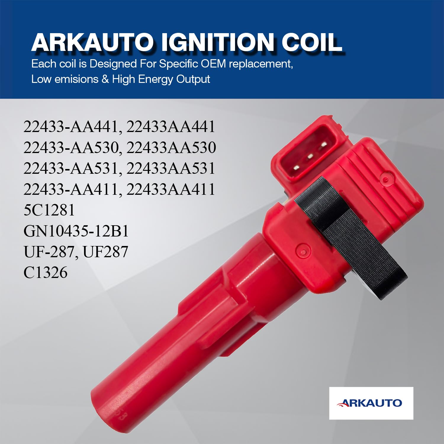 ARKAUTO Performance Ignition Coil Pack Set of 6 Compatible With Subaru B9 Tribeca Legacy Outback Tribeca 3.0 3.6 V6 EZ30 EZ36 Replacement For UF287 22433-AA531 22433-AA441 22433-AA530. ARKAUTO Ignition coils are always made with high grade copper, designed for specific application and tested on road. Please review the information below carefully to make sure this part compatible with your vehicle. ADVANTAGE – ARKAUTO ignition coils are all designed according to original OE types, which can replace your original faulty coils perfectly and function like the original ones. This coil is replacement for OE: 22433-AA441, 22433AA441 22433-AA530, 22433AA530 5C1281 GN10435-12B1 UF-287, UF287 C1326 buyers should compare the OE with your original cars� carefully before ordering to avoid buying a wrong part and cause an unnecessary lost. Compatible with SUBARU B9 Tribeca Legacy Outback Tribeca. Reduces common ignition coil issues such as; no/hard start, long crank time, misfires, lack of power, inconsistent transmission shifts, spark plug fouling, premature catalytic converter failure, poor fuel economy, check engine light illumination. 1 Year Limited Warranty – Please see if this part is compatible with your vehicle
