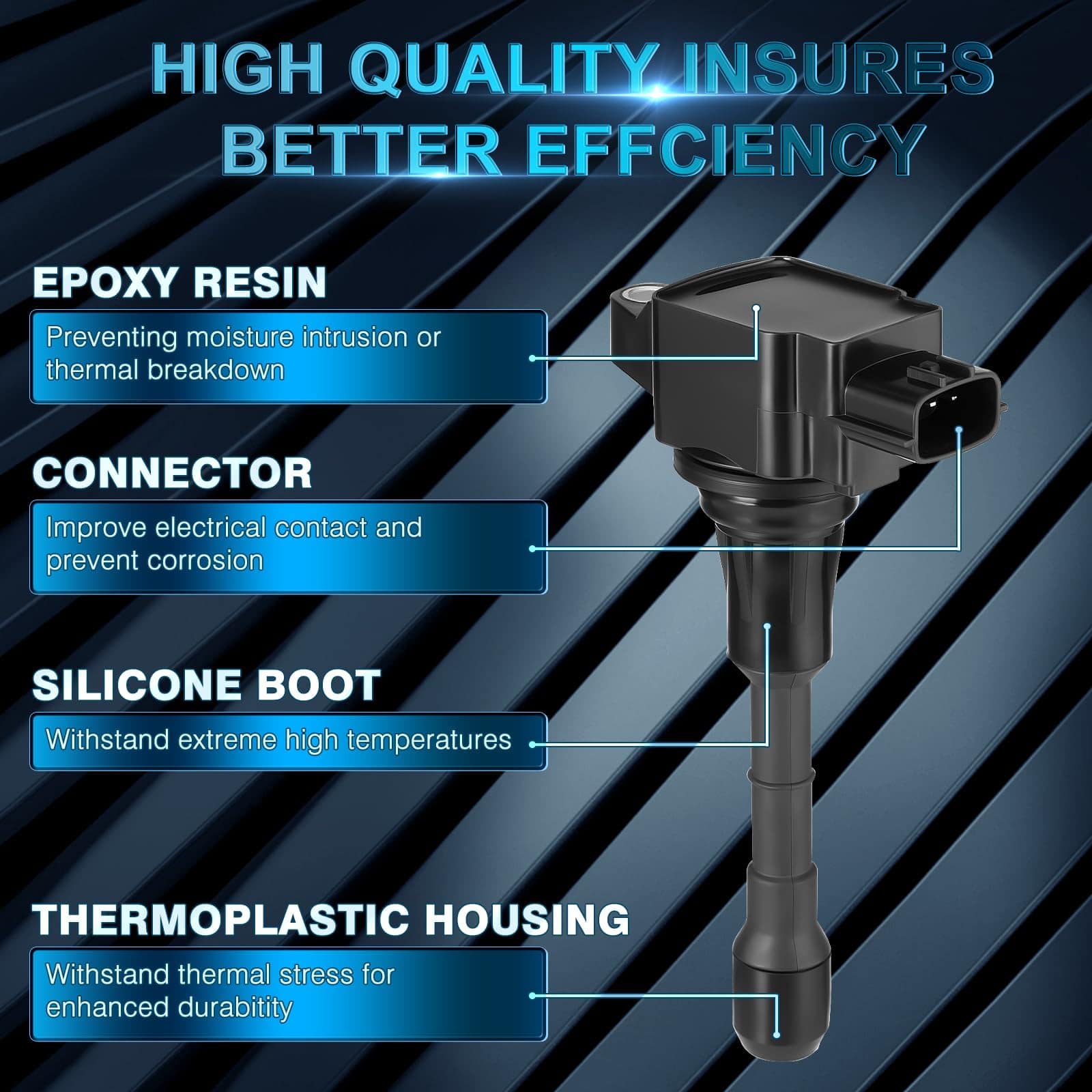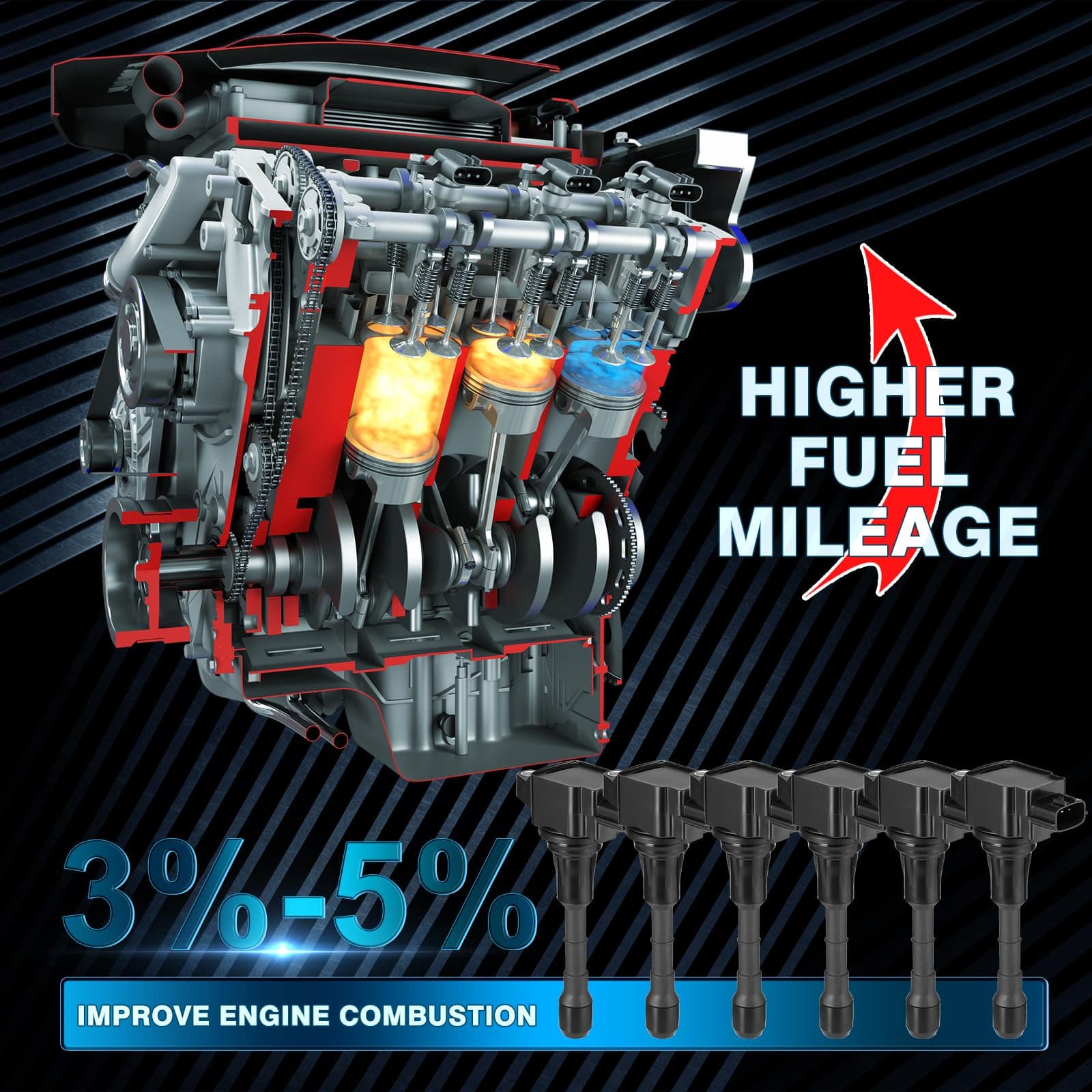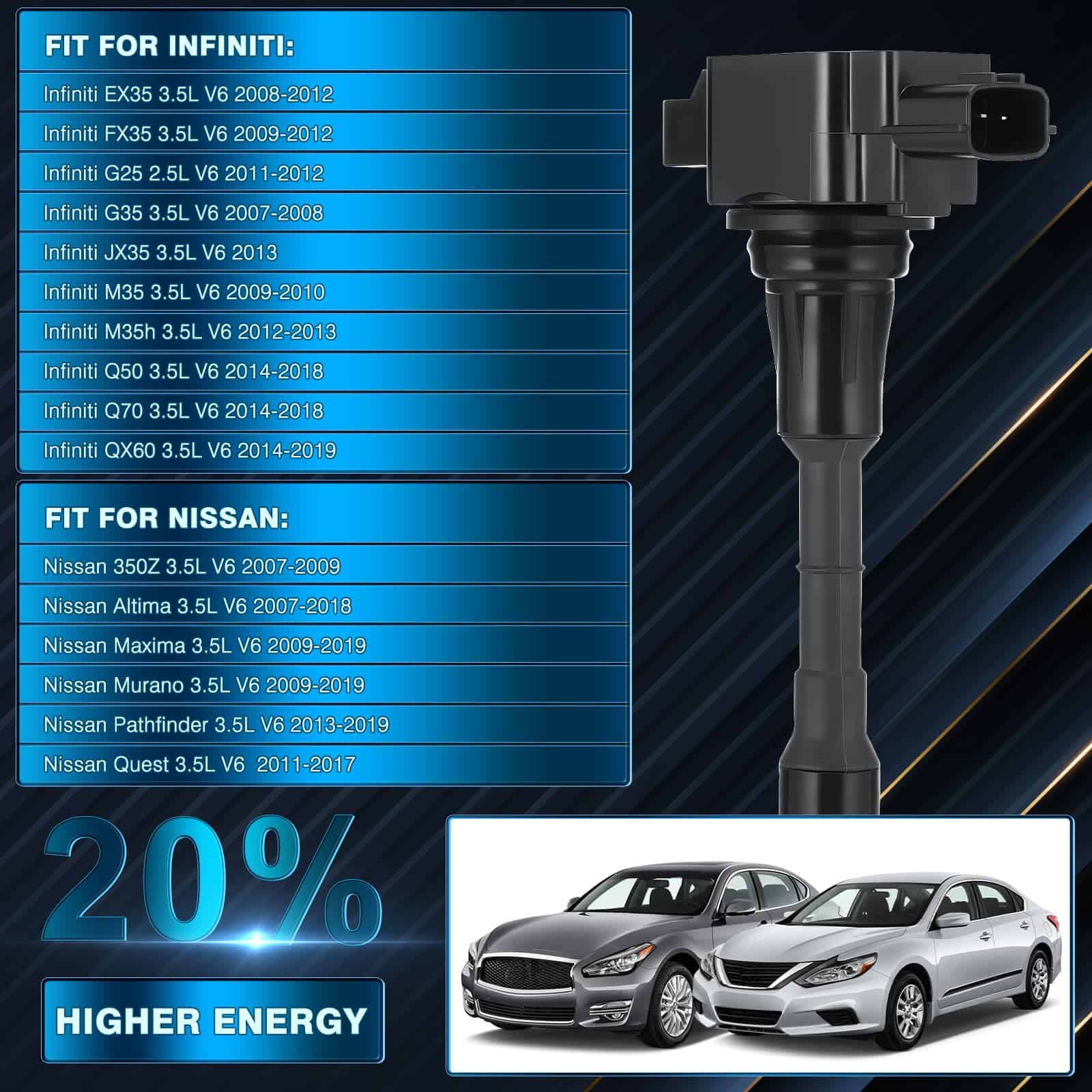 Las bobinas de encendido GEARZAAR están fabricadas para cumplir o superar las especificaciones OE para Infiniti G35, mejorando la fiabilidad y el rendimiento. El alambre de cobre altamente conductivo y la resina epoxi de alta resistividad, conexiones precisas y resistentes a la corrosión garantizan una excelente conectividad eléctrica y una larga vida útil (más de 50000 km y 5 años). Las nuevas bobinas pueden proporcionar un funcionamiento del motor mucho más suave. Instalación fácil en 10 minutos con un diseño compacto todo en uno, enchufar y listo, instala rápidamente en 10 minutos. No se requiere adaptación; reemplazar la pieza tú mismo en lugar de en el taller no solo ahorra cientos de dólares en precios de concesionarios sino que también ahorra tiempo.