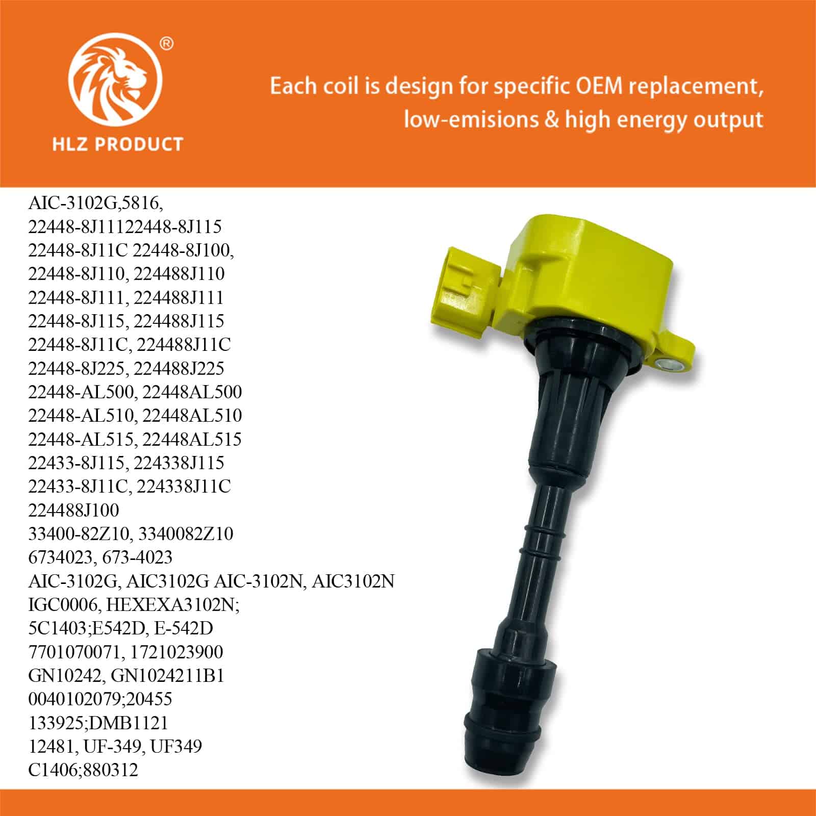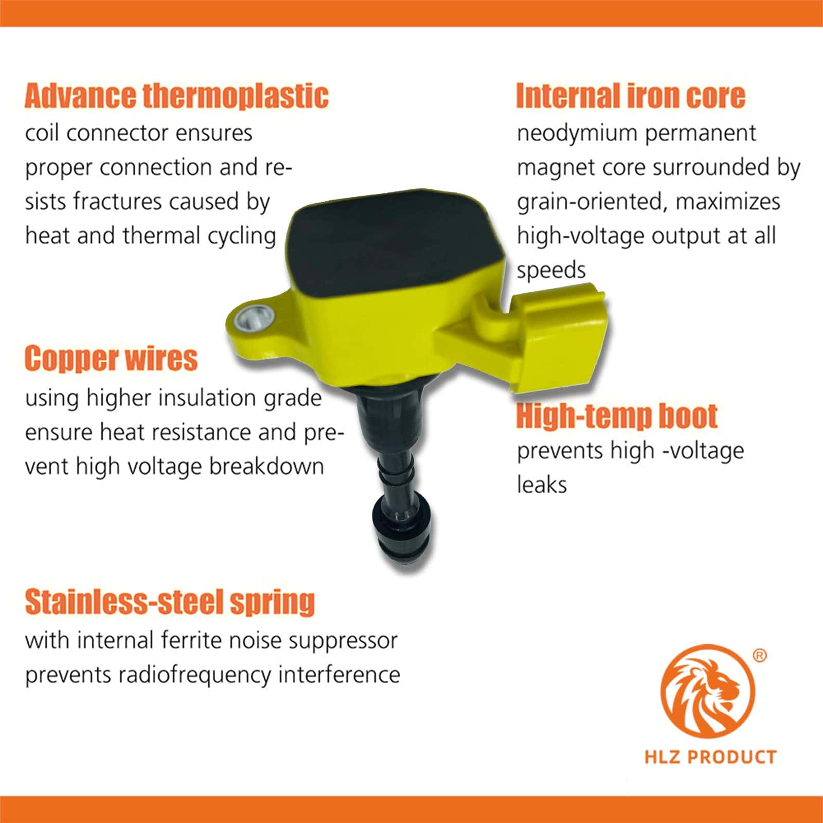 HLZ PRODUCT Conjunto de 6 Bobinas de Encendido Compatible con Nissan Altima Maxima Murano FRONTIER Pathfinder Quest NV1500-3500 Infiniti I35 QX4 3.5L 4.0 V6 VQ35 VQ40 Reemplazo para UF349 C1406 22448-8J115 son siempre hechas con cobre de alta calidad, diseñadas para aplicaciones específicas y probadas en carretera. Por favor, revise la información a continuación cuidadosamente para asegurarse de que esta pieza sea compatible con su vehículo. HLZ PRODUCT utiliza la última tecnología y componentes OE para llevar una calidad excepcional que supera los requisitos OE. ¡Mejora un 15% más de energía que las bobinas OE! Nuestras bobinas de encendido se pueden ubicar fácilmente en ambos lados del motor dentro del compartimento del motor y se pueden instalar en minutos. Podrá experimentar arranques de motor más consistentes y suaves de inmediato. La excelente fiabilidad y rendimiento asegura un reemplazo directo en la ubicación de fábrica, reemplazando el número de pieza de equipo original. Reduzca problemas comunes de bobinas de encendido, como; no arranque/difícil, tiempo de arranque prolongado, fallos de encendido, falta de potencia, cambios de transmisión inconsis… (Truncated for brevity)