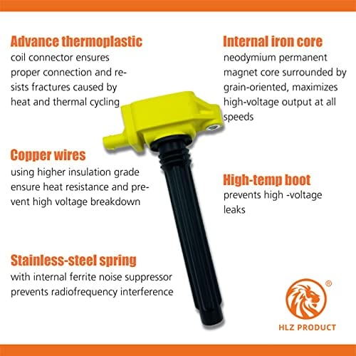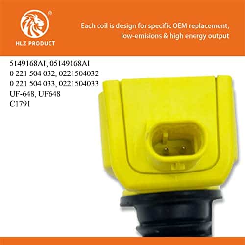 HLZ PRODUCT Set of 6 HIGH PERFORMANCE Ignition Coil Pack es un conjunto de bobinas de encendido de alta calidad y alto rendimiento, diseñadas para adaptarse de manera precisa y confiable a vehículos Chrysler, Jeep y Dodge. Las bobinas de encendido están hechas con cobre de alta calidad y han sido probadas en carretera para garantizar un funcionamiento óptimo. Este conjunto de 6 bobinas de encendido proporciona una mejora del 15% en energía en comparación con las bobinas de equipo original, lo que resulta en arranques de motor más suaves y consistentes. Además, estas bobinas de encendido pueden ser instaladas en minutos en ambos lados del motor, lo que las hace fáciles de reemplazar. Con una excelente confiabilidad y rendimiento, estas bobinas de encendido son un reemplazo directo en la ubicación de fábrica, lo que garantiza una instalación sin problemas. Reducen problemas comunes de las bobinas de encendido como arranque nulo/difícil, fallos, falta de potencia y problemas de combustión. Además, estas bobinas vienen con una garantía limitada de 1 año para brindar tranquilidad. Para asegurarse de que esta parte sea compatible con su vehículo, por favor ingrese la información de su vehículo en su Garaje de el fabricante. Actualice su sistema de encendido con el conjunto de 6 bobinas de encendido de ALTO RENDIMIENTO de HLZ PRODUCT y experimente una mejora inmediata en la confiabilidad y rendimiento de su motor.