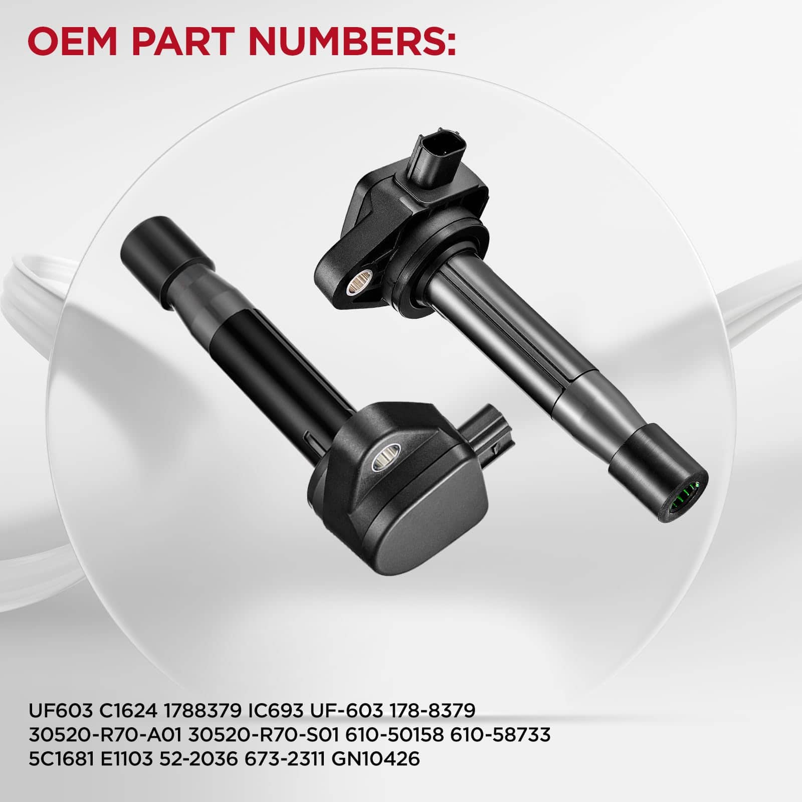 2. Compatibilidad Bobina de Encendido UF603 Compatible con 2008-2010 Honda Odyssey EX-L Touring, 2008-2012 Honda Accord, 2009-2012 Acura RL, 2009-2014 Acura TL, 2009-2014 Honda Ridgeline, 2009-2015 Honda Pilot, 2010-2011 Honda Accord Crosstour, 2010-2013 Acura MDX ZDX, 2010-2014 Acura TSX, 2011-2017 Honda Odyssey, 2012 Honda Crosstour. Para obtener más información, consulte las imágenes o la página de detalles del artículo.