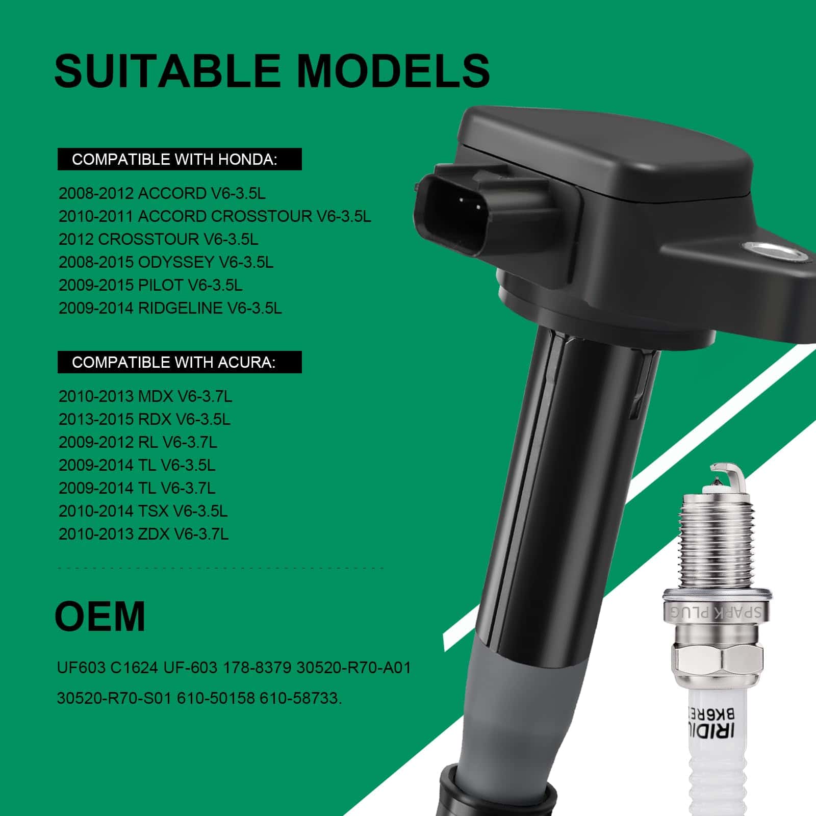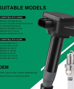 Este conjunto de 6 bobinas de encendido de TXROMTZ es una excelente opción para reemplazar las bobinas de encendido de su vehículo Honda o Acura. Son compatibles con una amplia gama de modelos, incluidos Honda Accord, Odyssey, Crosstour, Pilot, Ridgeline y varios modelos de Acura como RL, TL y TSX. Las bobinas están diseñadas para un ajuste directo y son fáciles de instalar.