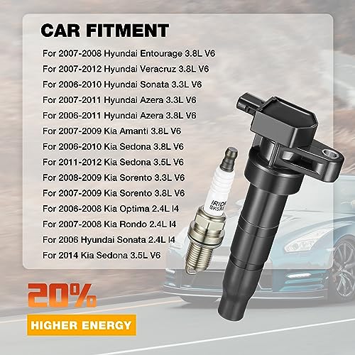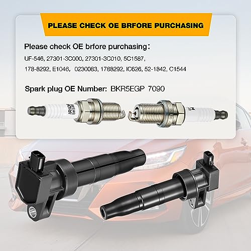 Conjunto de bobinas de encendido UF-546 y bujías 7090 de alta calidad para varios modelos de Hyundai y Kia. Las bobinas están fabricadas con material de acero de silicio, goma importada de Japón y alambre barnizado importado de Alemania, lo que garantiza una larga vida útil y un mejor rendimiento. Las bujías profesionales están hechas de materiales de alta tecnología, con electrodo de iridio y cerámica única para un arranque rápido y aceleración potente. Recomendado para vehículos con problemas de rendimiento como temblores, fallas en el arranque, aceleración lenta y aumento del consumo de combustible. El conjunto de bobinas de encendido y bujías BDFHYK brinda una experiencia de usuario profesional para mejorar el funcionamiento del vehículo. Fabricante de piezas de automóviles con experiencia y fábrica propia, comprometido con la calidad y el servicio al cliente.