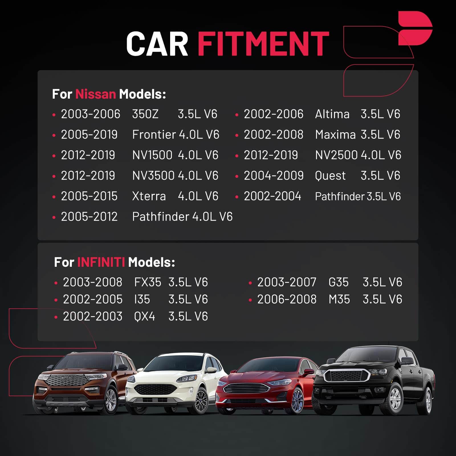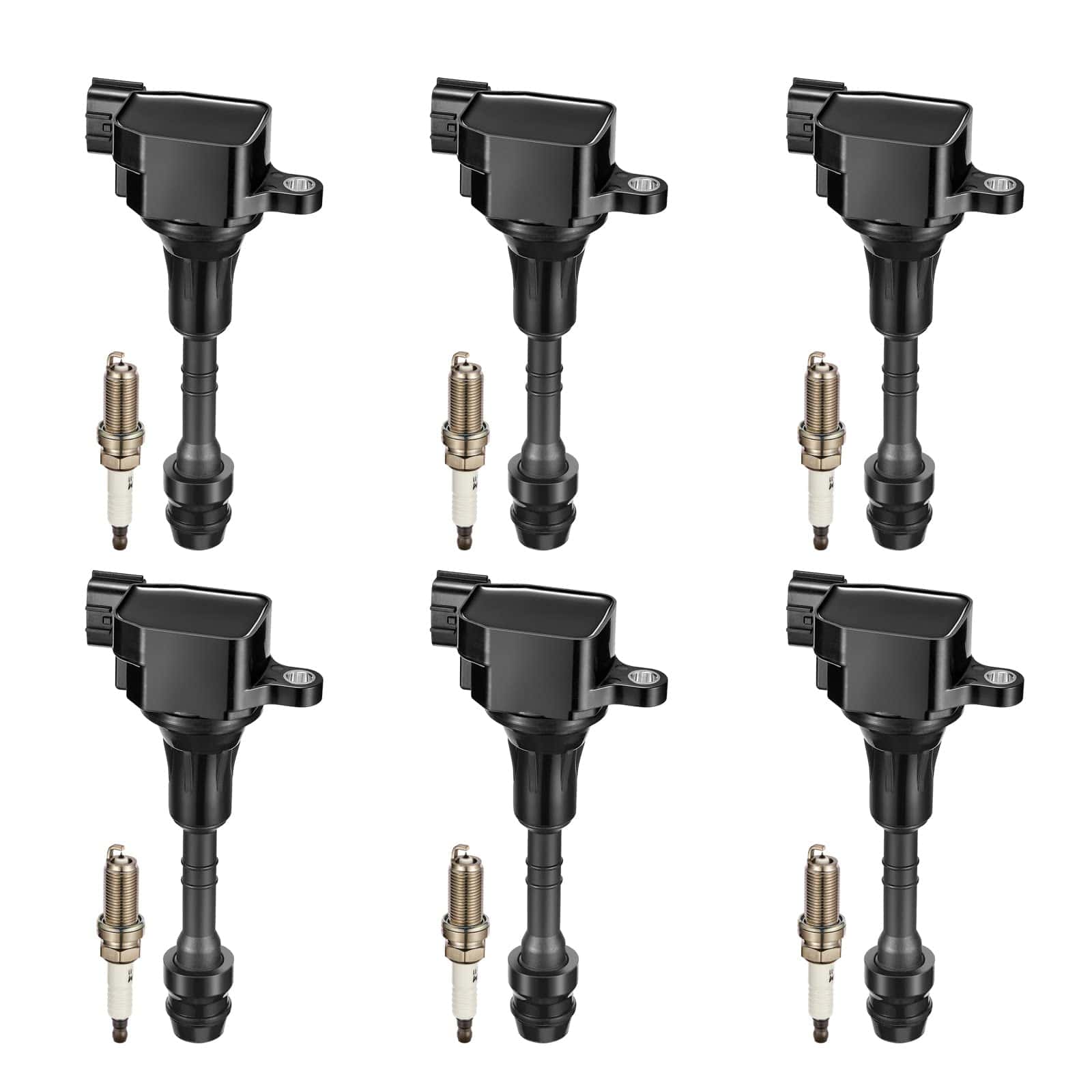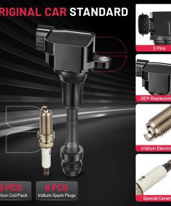 Conjunto de 6 bobinas de encendido pack UF401 y bujías de iridio NGK4469 Compatible con 350Z INFINITI FX35 G35 I35 M35 QX4 Nissan 350Z Altima Frontier 3.5L 4.0L V6 Reemplazo para C1439 22448-AL615. Este conjunto incluye 6 bobinas de encendido UF401 y 6 bujías de iridio NGK4469 que son compatibles con una amplia gama de modelos de vehículos, incluidos INFINITI G35 I35 M35 QX4 Nissan 350Z Altima Frontier Maxima NV1500 NV2500 NV3500 Pathfinder Quest Xterra. Es esencial verificar la compatibilidad detallada antes de la compra, ya que cada modelo de automóvil puede requerir una configuración específica.