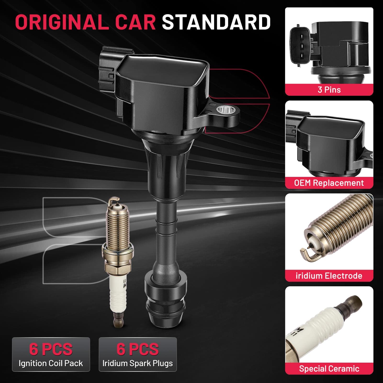 Conjunto de 6 bobinas de encendido UF401 y bujías de iridio
