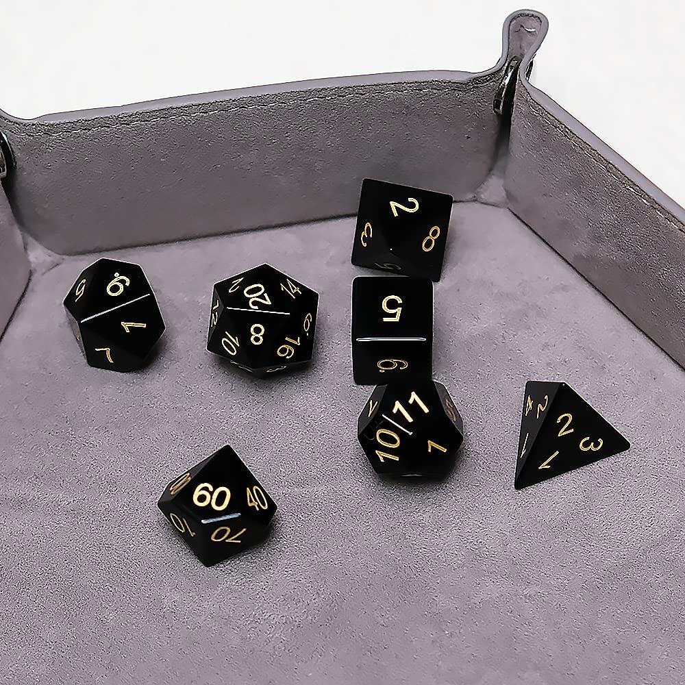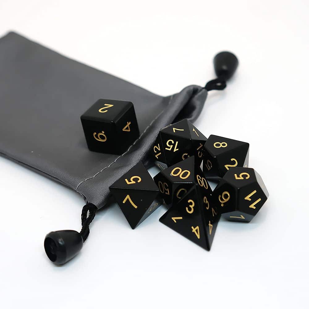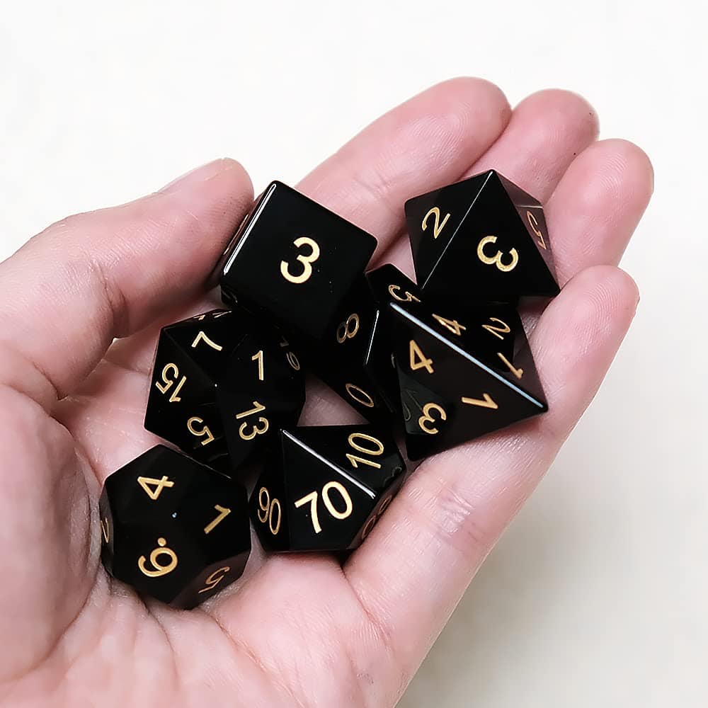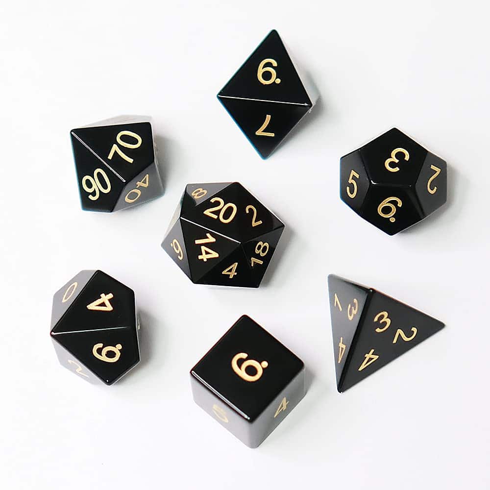 Conjunto de 7 dados de gema de Obsidiana Negra Natural para