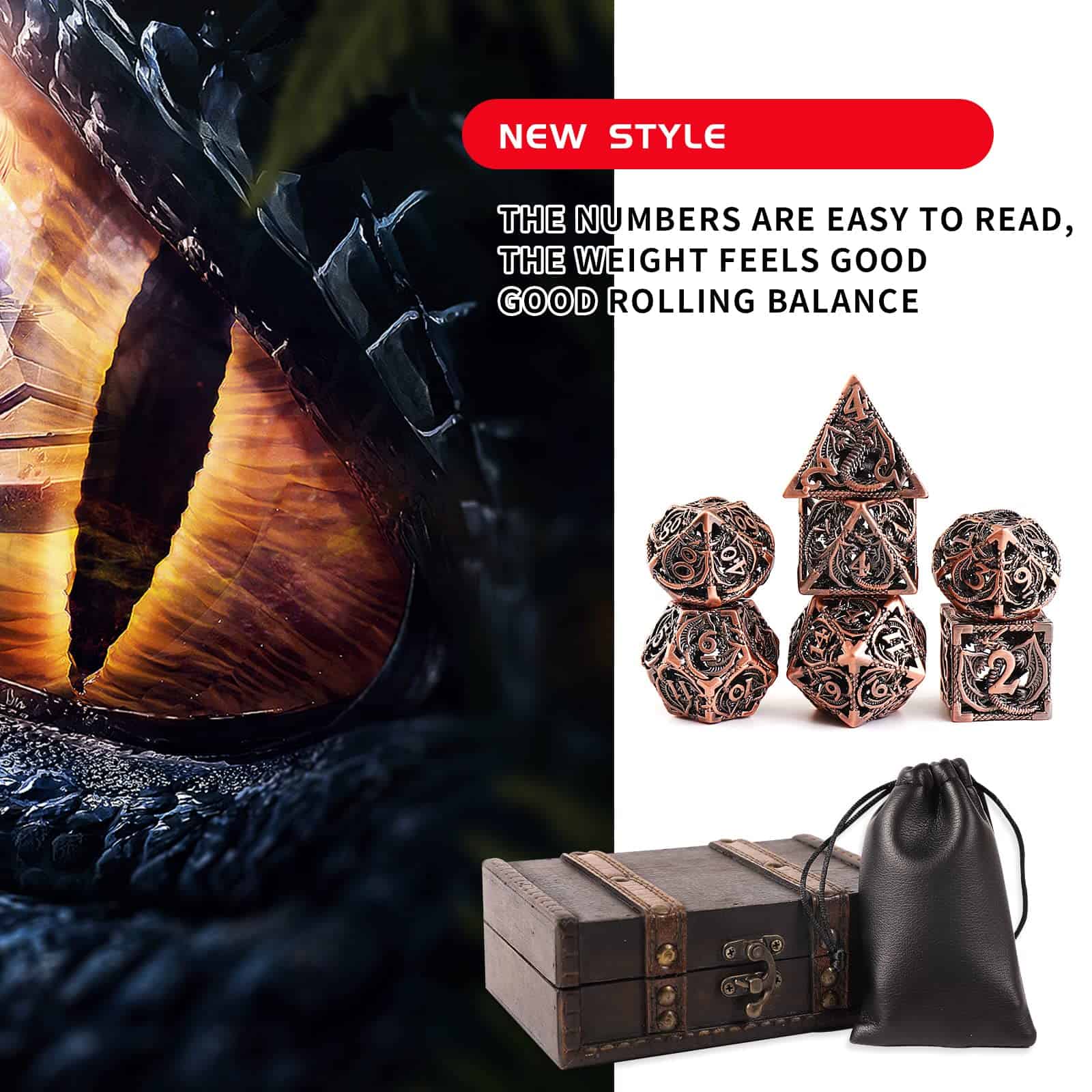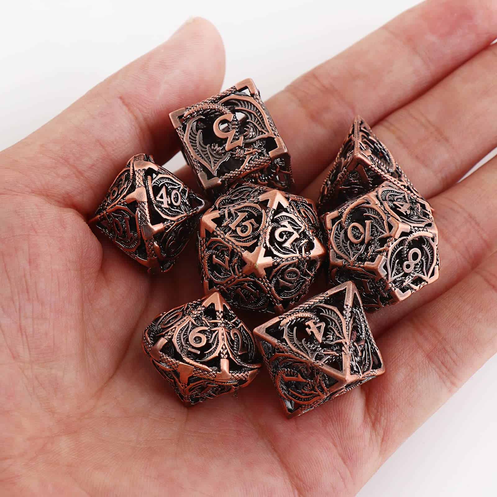 Conjunto de 7 dados huecos de metal para Dungeons and
