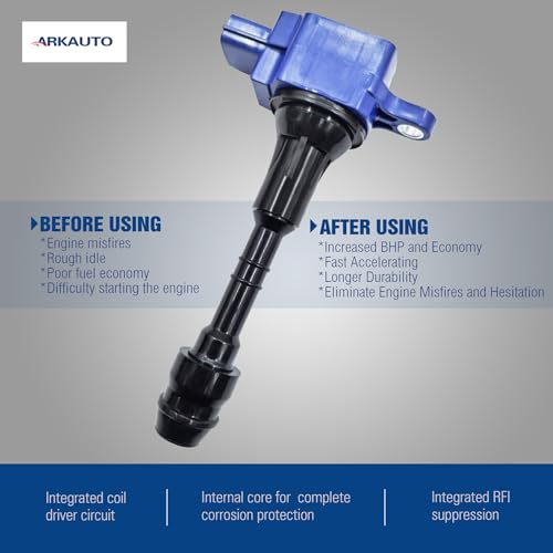 ARKAUTO Conjunto de 8 bobinas de encendido de rendimiento, diseñadas con cobre de alta calidad y probadas en carretera. Estas bobinas son compatibles con INFINITI FX45 M45 Q45 QX56 NISSAN ARMADA PATHFINDER TITAN Patrol. Las bobinas ARKAUTO se ajustan a los tipos OE originales y pueden reemplazar perfectamente las bobinas originales defectuosas. Reduzca problemas comunes de bobinas de encendido y disfrute de un mejor rendimiento de encendido en su vehículo. Con una garantía limitada de 1 año, puede estar seguro de la calidad y durabilidad de estas bobinas de encendido.