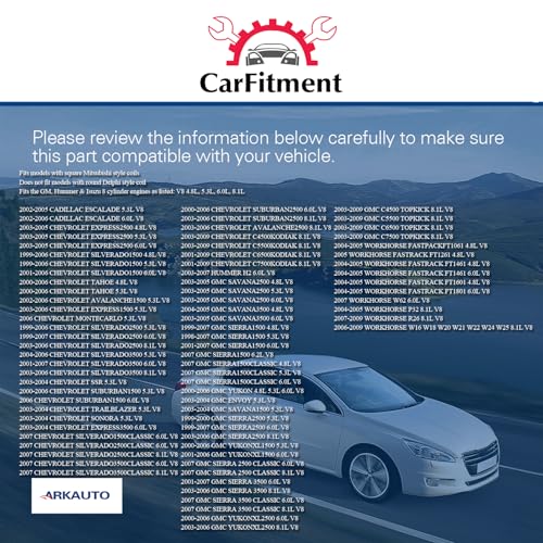 ARKAUTO Las bobinas de encendido están diseñadas siempre con cobre de alta calidad, diseñadas para una aplicación específica y probadas en carretera. Por favor, revise la información a continuación cuidadosamente para asegurarse de que esta parte sea compatible con su vehículo. Las bobinas de encendido ARKAUTO están diseñadas según los tipos originales de OE, las cuales pueden reemplazar perfectamente sus bobinas originales defectuosas y funcionan como las originales. Esta bobina es un reemplazo para OE: 6737000, 673-7000 D581, D-581 GN10298 5C1083; 20404 12464, UF-271, UF271 C1208; 880394 los compradores deben comparar cuidadosamente el OE con sus autos originales antes de realizar el pedido para evitar comprar una pieza incorrecta y causar una pérdida innecesaria. Compatible con CADILLAC ESCALADE CHEVROLET EXPRESS2500 SONORA HUMMER H2 GMC SAVANA3500 WORKHORSE FASTPACKFT1061. Reduce problemas comunes de las bobinas de encendido como; no arranque/difícil, tiempo de arranque largo, fallos de encendido, falta de potencia, cambios de marcha inconsistentes, ensuciamiento de las bujías, fallo prematuro del convertidor catalítico, mala economía de combustible, iluminación del indicador de verificación del motor. Garantía limitada de 1 año – Por favor, verifique si esta parte es compatible con su vehículo.