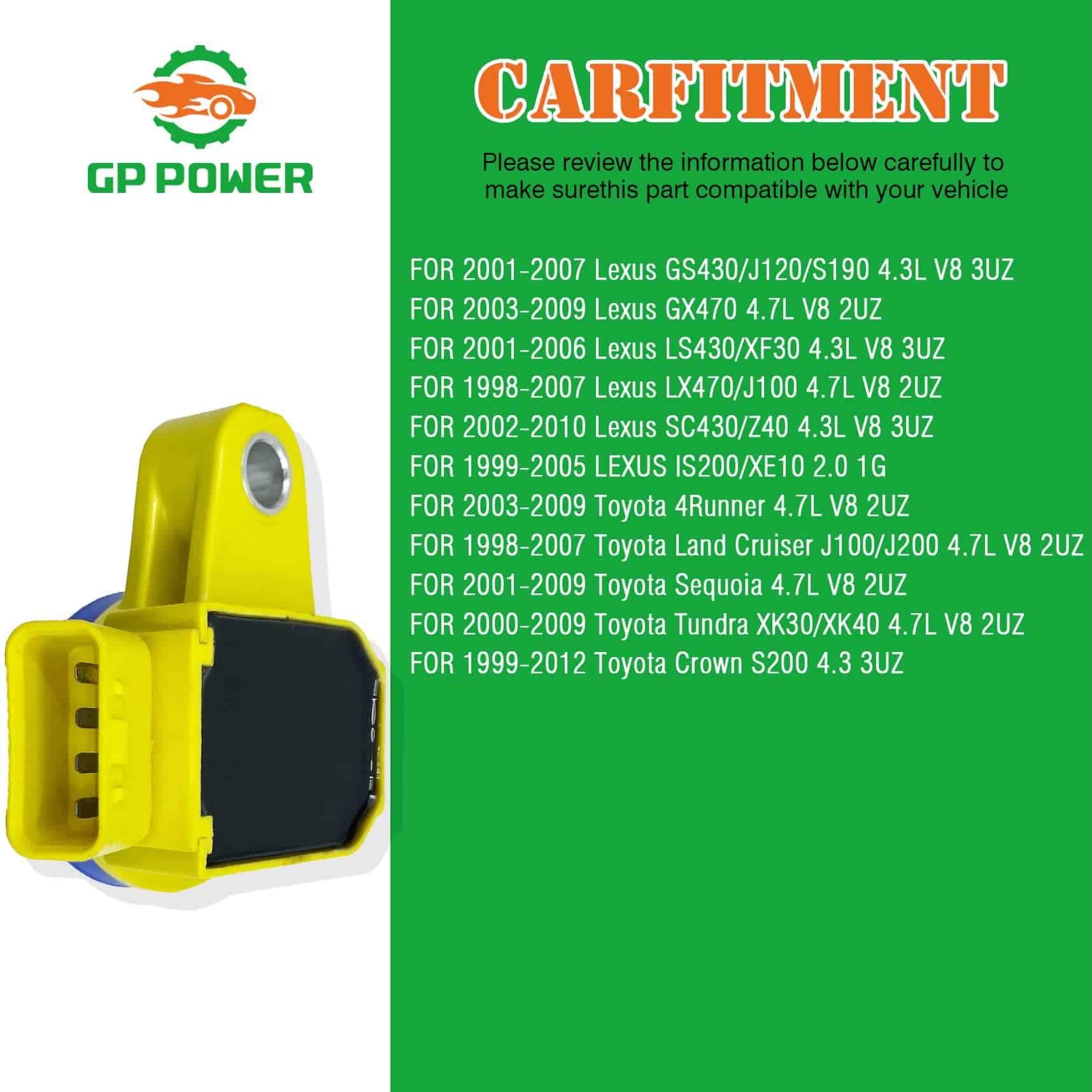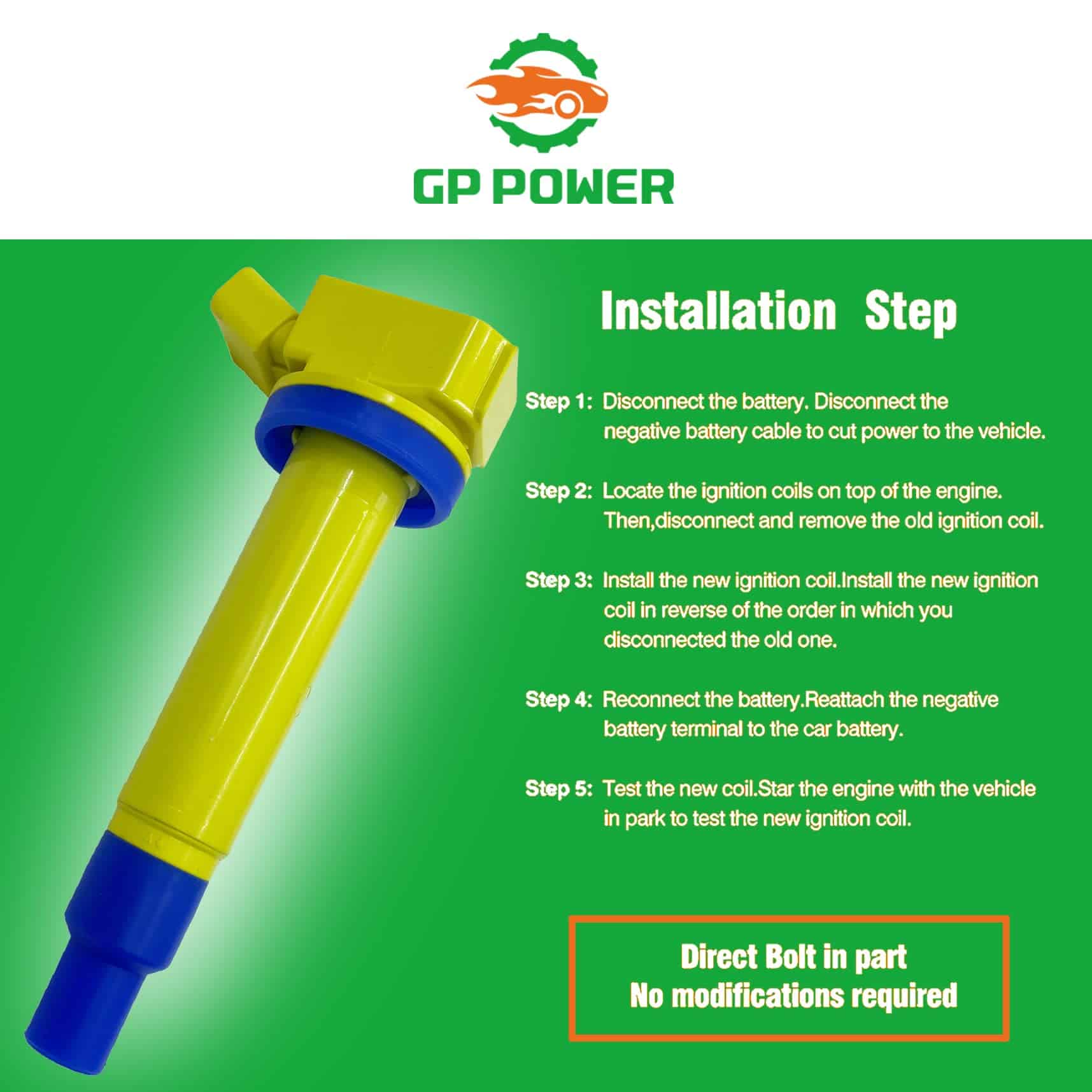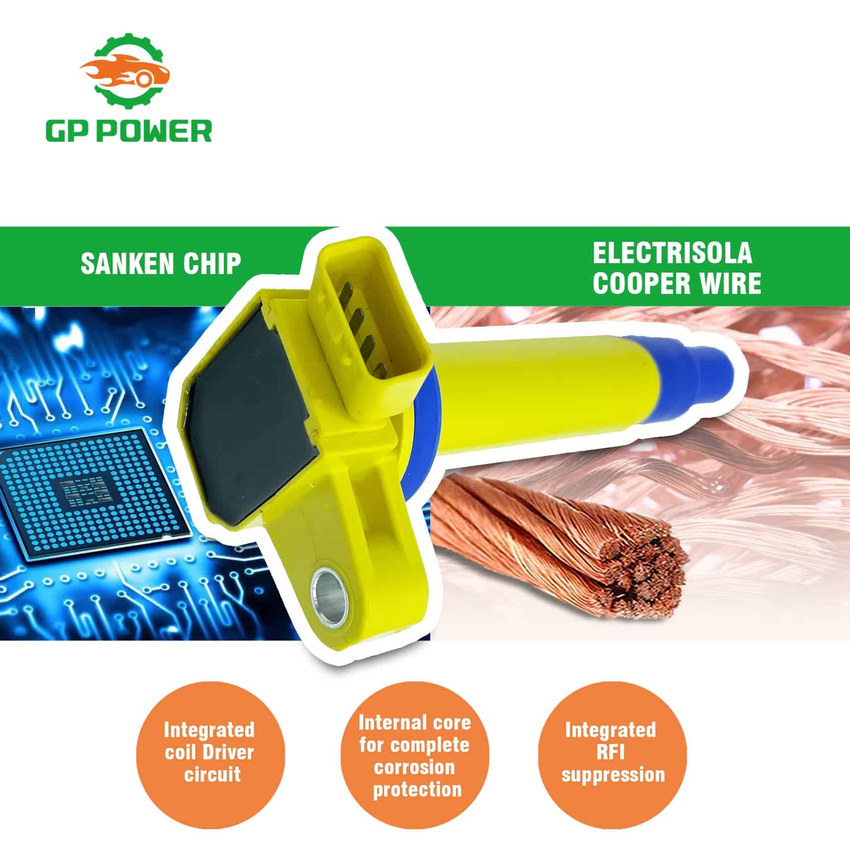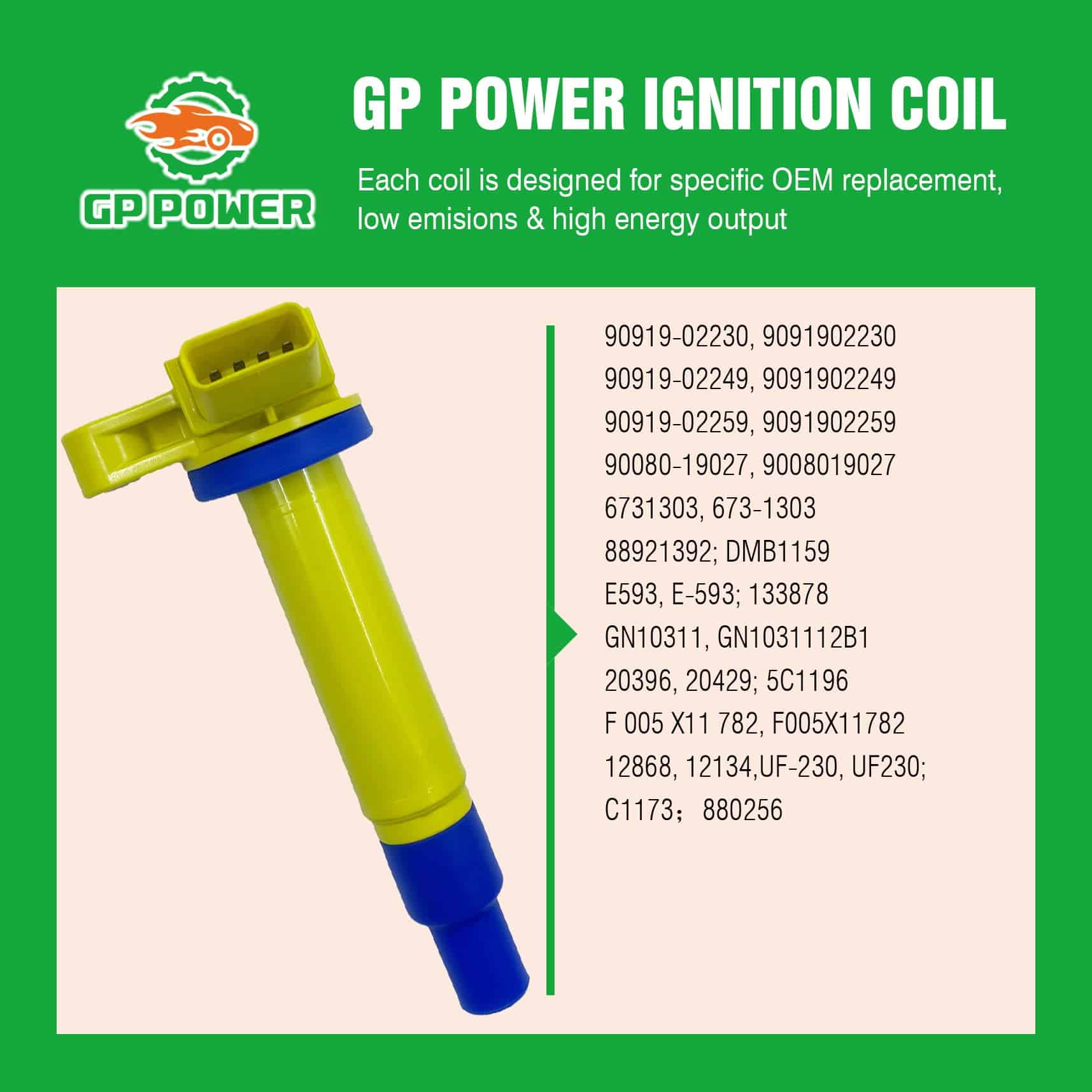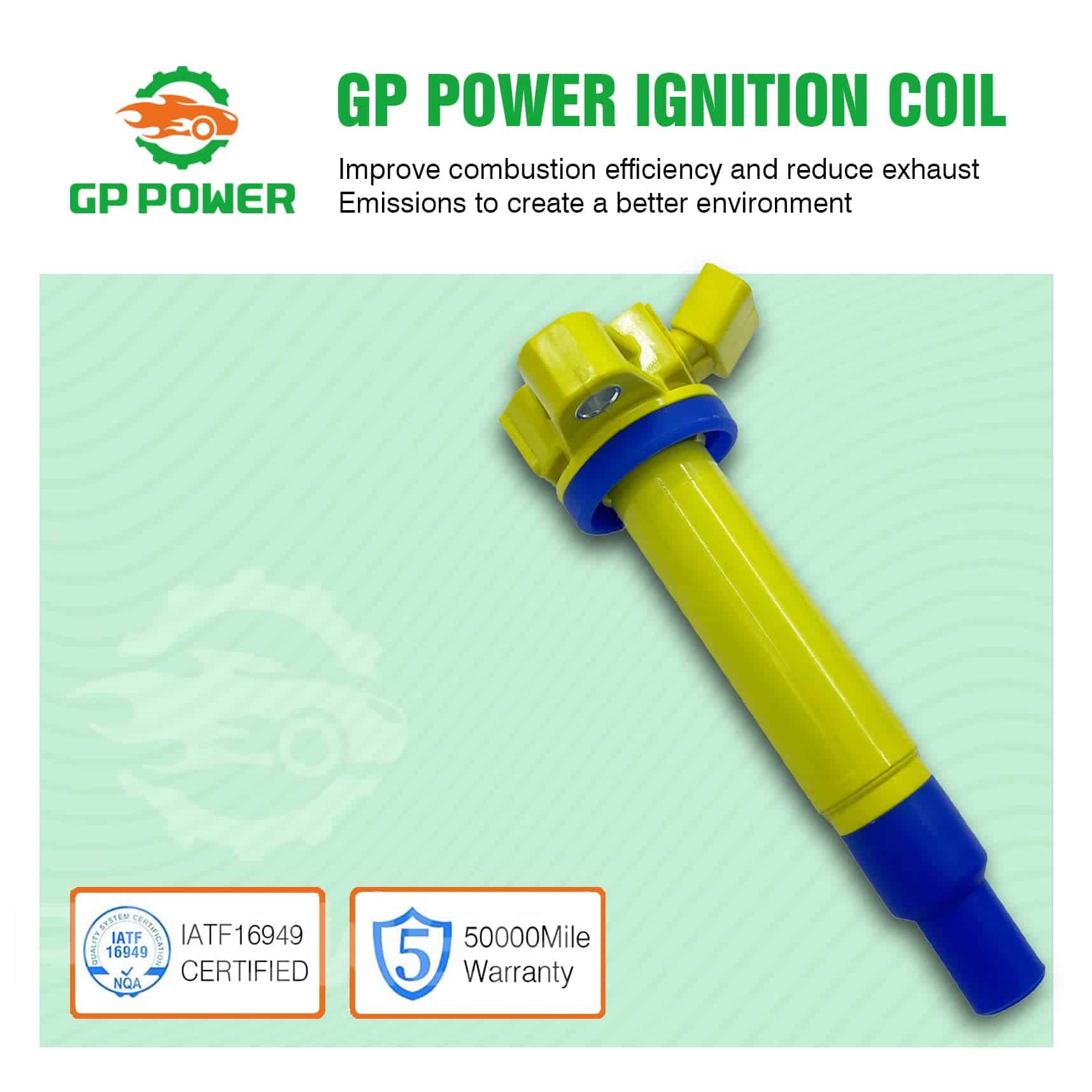 GP POWER Ignition coils siempre se fabrican con cobre de alta calidad, diseñadas para una aplicación específica y probadas en la carretera. Por favor, revise la información a continuación con cuidado para asegurarse de que esta parte sea compatible con su vehículo. GP POWER utiliza la última tecnología y componentes OE para ofrecer una calidad excepcional que supera los requisitos OE. Nuestros paquetes de bobinas de encendido se pueden encontrar fácilmente en ambos lados del motor dentro del compartimento del motor, lo que se puede instalar en cuestión de minutos. Experimentará arranques de motor más consistentes y suaves de inmediato. Excelente confiabilidad y rendimiento, reemplazo directo en la ubicación de fábrica, reemplaza el número de parte original. Reduce problemas comunes de bobinas de encendido como; arranque difícil o inexistente, tiempo de calado largo, fallos de encendido, falta de potencia, cambios de marcha inconsistentes, obstrucción de las bujías, fallo prematuro del convertidor catalítico, mala economía de combustible, iluminación del indicador de check engine. Garantía limitada de 1 año – Por favor, verifique si esta parte es compatible con su vehículo.