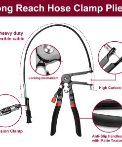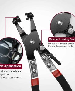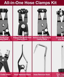 Este conjunto de llaves de abrazaderas está fabricado con acero al carbono de alta calidad y PVC, con cuerpos de herramientas tratados térmicamente para resistir eficazmente la extrusión con alta dureza. La técnica de recubrimiento electrolítico mejora la resistencia a la corrosión y al óxido. Las asas antideslizantes con textura mate están diseñadas ergonómicamente y son más resistentes al deslizamiento que las asas de PVC. Las 5 llaves de abrazaderas con resorte se pueden bloquear con un dispositivo de bloqueo por trinquete que mantiene la abrazadera en la posición abierta para evitar accidentes y lesiones, y acelerar su trabajo de reparación. Específicamente utilizado para el montaje y desmontaje de una variedad de mangueras como línea de combustible, tubo de aceite blando, tubo de agua flexible, manguera de radiador, manguera de refrigerante, etc. en mantenimiento doméstico, mecánico y eléctrico, servicio de reparación de automóviles y otros campos. Viene con instrucciones sobre cómo usar cada tipo de llave. El conjunto de llaves de abrazaderas automotrices está equipado con una caja de almacenamiento, fácil de transportar, almacenar de forma segura y organizar rápidamente.