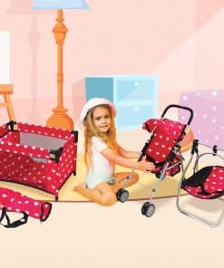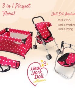 Este mega set de juego de muñecas incluye un cochecito de muñeca, un columpio y una cuna para muñecas. Las niñas disfrutarán de horas interminables de fantástica diversión en el juego de simulación con este set de súper valor.