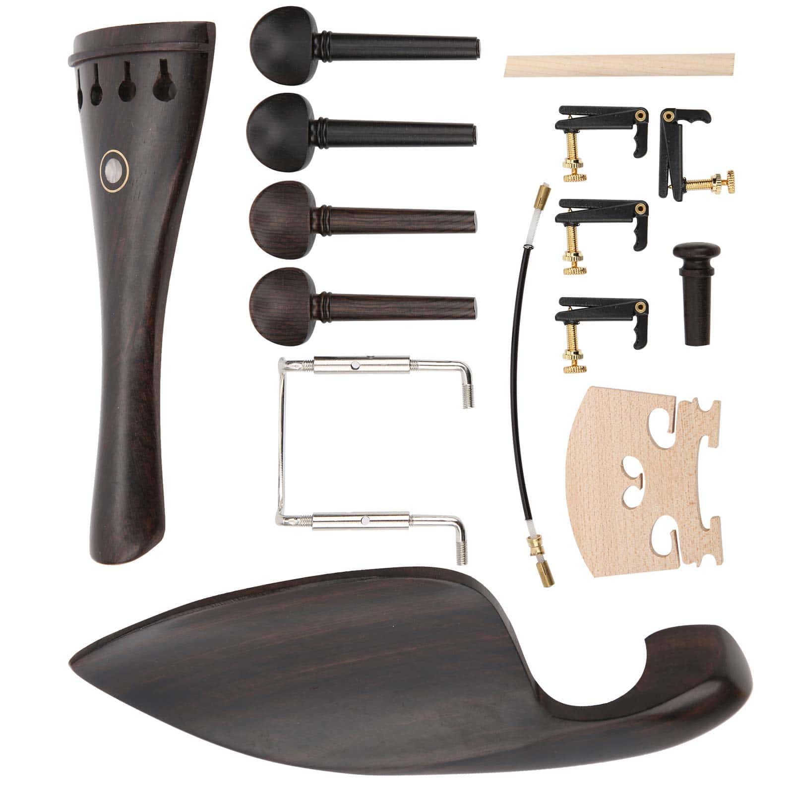 Obtenga todo lo que necesita en un solo conjunto para mejorar o reparar su violín 4/4. Este conjunto duradero y de alta calidad incluye una mentonera, clavijas de ébano, clavijeros, un puente, una clavija final y estayes para garantizar un sonido excelente y un ajuste perfecto. Ya sea que sea un estudiante que comienza o un músico experimentado, estos accesorios de violín son imprescindibles para su instrumento. ¡Haz que tu violín suene mejor que nunca con este increíble conjunto de accesorios!