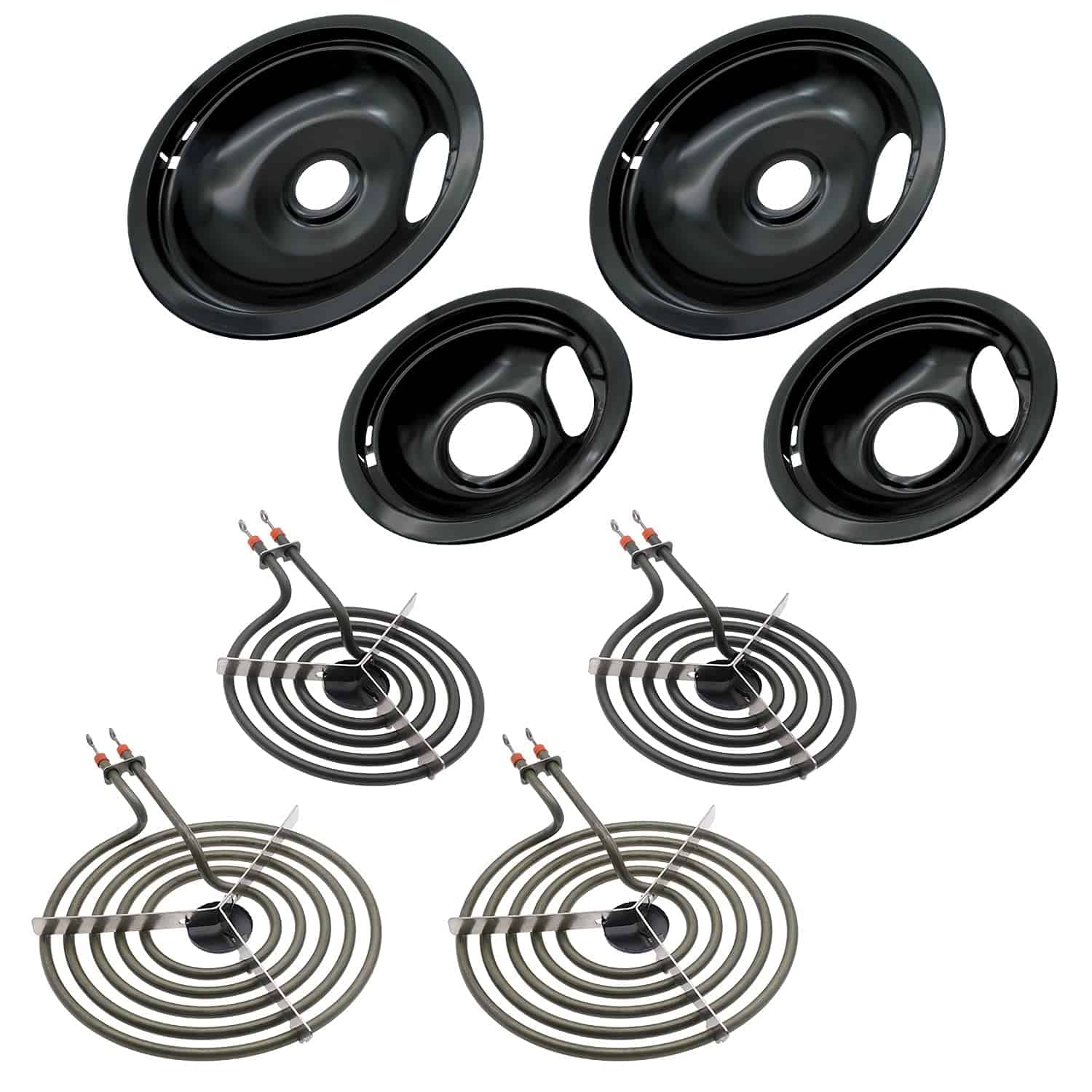 Las bandejas de goteo tienen un propósito más allá de verse atractivas. Las bandejas de goteo capturan y reflejan el calor de nuevo hacia la bobina, lo que hace que el quemador funcione de manera más eficiente. Las bandejas de goteo también atrapan derrames que de lo contrario gotean hacia el interior del horno y pueden prevenir descargas eléctricas al usuario. Si sus bandejas de quemador actuales están dañadas o ya no se pueden limpiar, puede reemplazarlas con este conjunto. Número de pieza: W10288051 (W10290350 & W10290353) Color: Negro Tamaño: 6 pulgadas mide 7.45″; 8 pulgadas mide 9.35″ Juego de 4 piezas Elemento de superficie del quemador de cocina eléctrica MP22YA (2) MP15YA 6″, (2) MP21YA 8″ Características: Las vueltas son cuántas veces la bobina da vueltas en un círculo. Tiene un soporte de estilo «Y». Este quemador se ajusta a la mayoría de las estufas excepto GE/Hotpoint. Reemplaza números de pieza: Elemento de quemador de superficie de 6 pulgadas reemplaza 5-50071, 4381748, 19950010, 15927, 0E00601299, 04100165, Y04100165, 1242501, AP6024130, PS11757480, EAP11757480, PD00003241, WPY04100165, Y707456, Y703422, Y0E00601299, MP15MA, MP12MA, 7406P048-60, 74005446, 715927, 707456, 703422, 7-7456, 7-3422, 7-15927, 550071. Elemento de quemador de superficie de 8 pulgadas reemplaza WPY04100166, 4381750, Y0E00801799, 400178, 19950009, 1938-344, 1938-249, 15928, 0E00801799, 04100166, SU306, MP26YA, MP26M, MP21U, MP21MA, 7406P050-60, 74005447, 715928,707457,7-7457, 7-15928, 550072, 5-50072, Y04100166, AP6024131, PS11757481, EAP11757481, 1242502, PD00003012. Se ajusta a la mayoría incluyendo: Whirlpool, Amana, Crosley, May-tag, etc. Lista de paquetes: 2 x Bandeja de Goteo de Quemador Pequeño, 6 Pulgadas 2 x Bandeja de Goteo de Quemador grande, 8 Pulgadas 2 x MP15YA 6″(quemadores de 1500 vatios 230v 4 vueltas) 2 x MP21YA 8″(quemadores de 2100 vatios 230 v 5 vueltas) ¡Elija nuestras bandejas de goteo W10288051 y el elemento de quemador de cocina eléctrica MP22YA para ahorrar tiempo y dinero ahora!