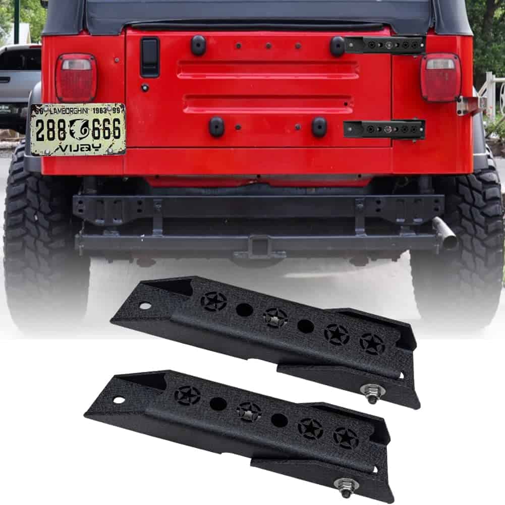 Compatible con: 1997-1998-1999-2000-2001-2002-2003-2004-2005-2006 Wrangler TJ. Este conjunto de bisagras de puerta trasera reforzadas de acero Vijay Heavy Duty es compatible con los modelos de Wrangler TJ fabricados entre 1997 y 2006. Está hecho de acero resistente, lo que garantiza durabilidad y resistencia. El paquete incluye un conjunto de bisagras que se instalan fácilmente con pernos, sin necesidad de modificaciones. Reemplace las bisagras de fábrica frágiles con estas bisagras de metal estructural para una mayor robustez y longevidad en su vehículo. Mejore la funcionalidad y seguridad de la puerta trasera de su Wrangler TJ con este conjunto de bisagras de alta calidad.