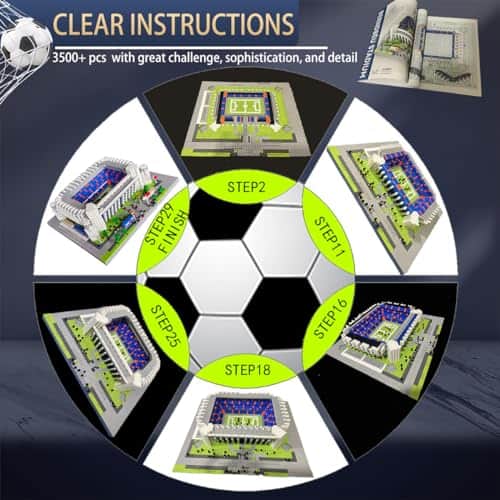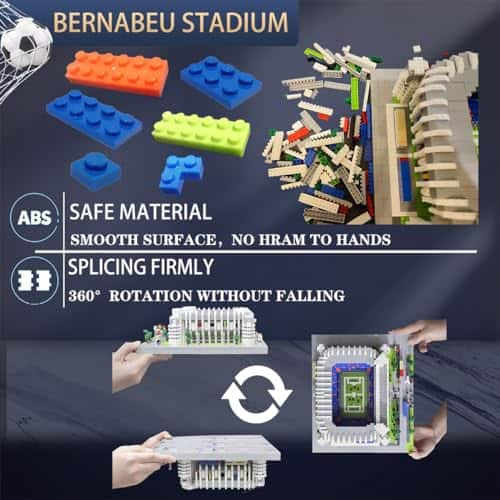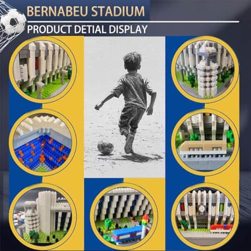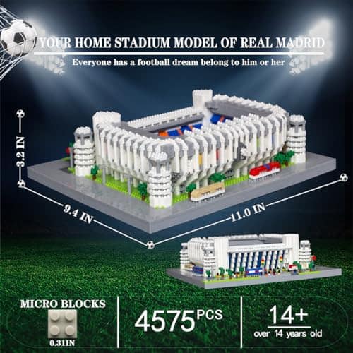 Crea un modelo de estadio del Real Madrid. 4575 piezas de micro bloques se ensamblan para crear una réplica en 3D del famoso estadio de fútbol.