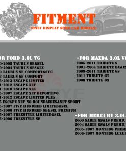 3. Compatibilidad 2: Para Mazda Tribute | S 2005-2011 | DX & ES & LX 2001-2004 | GS 2009-2011 | GT 2011 | GX 2008 | 3.0L V6 Para Mercury Sable, Montego | GS & LS Premium & LS 2000 2004 | Premier 2005-2007 | Luxury 2006 2007 | 3.0L V6.