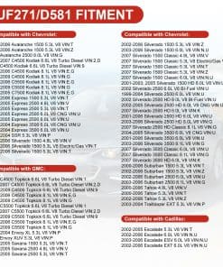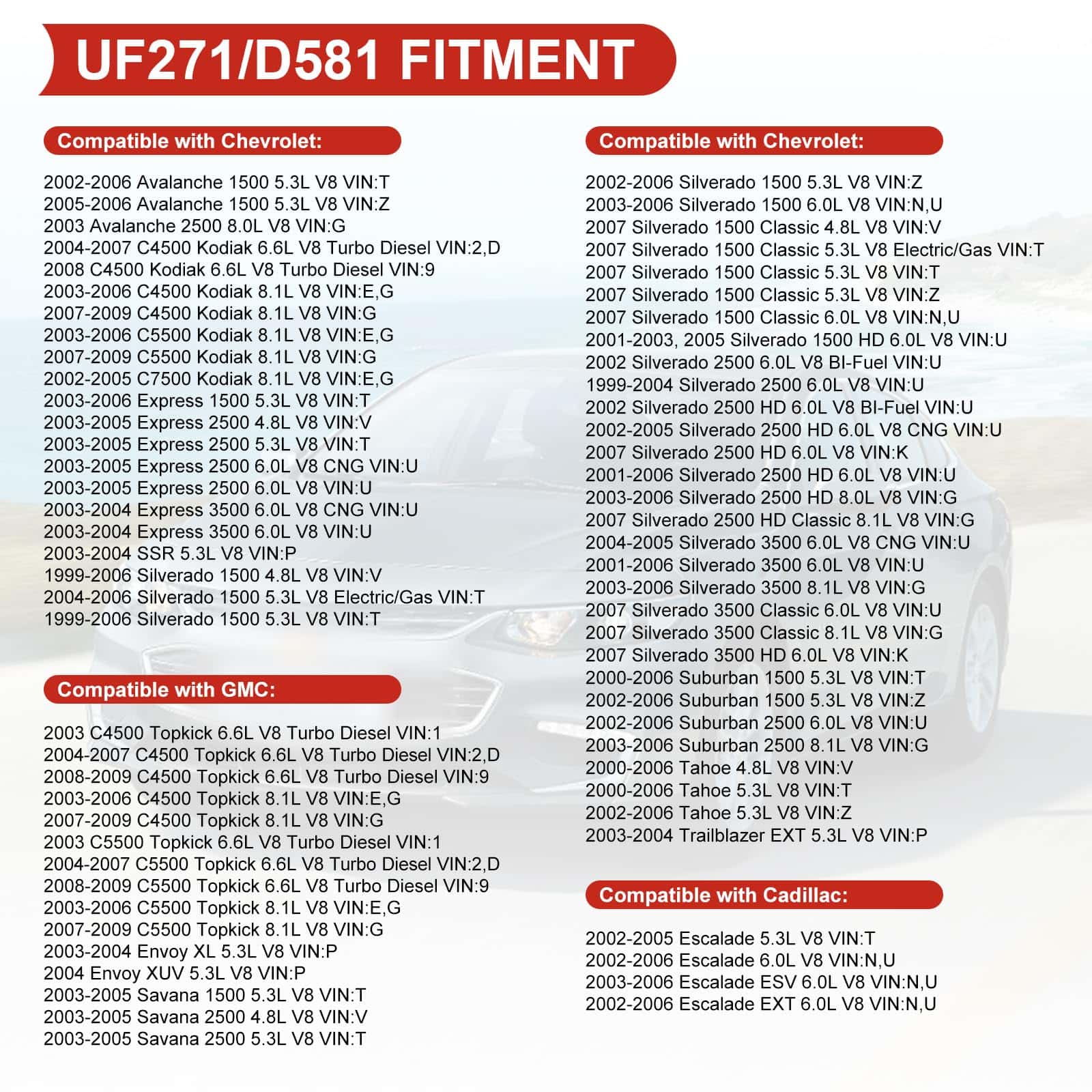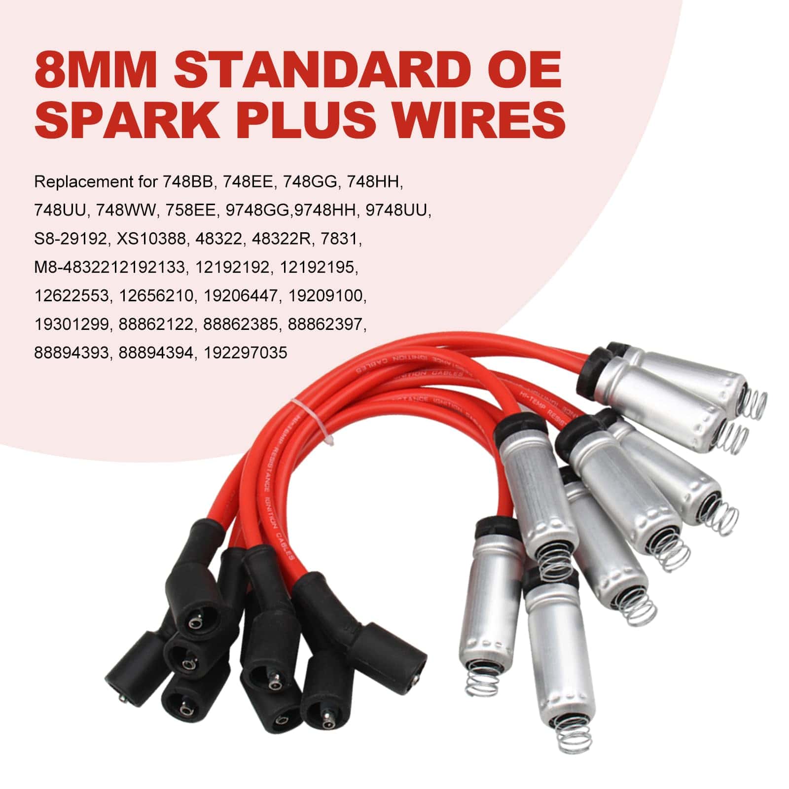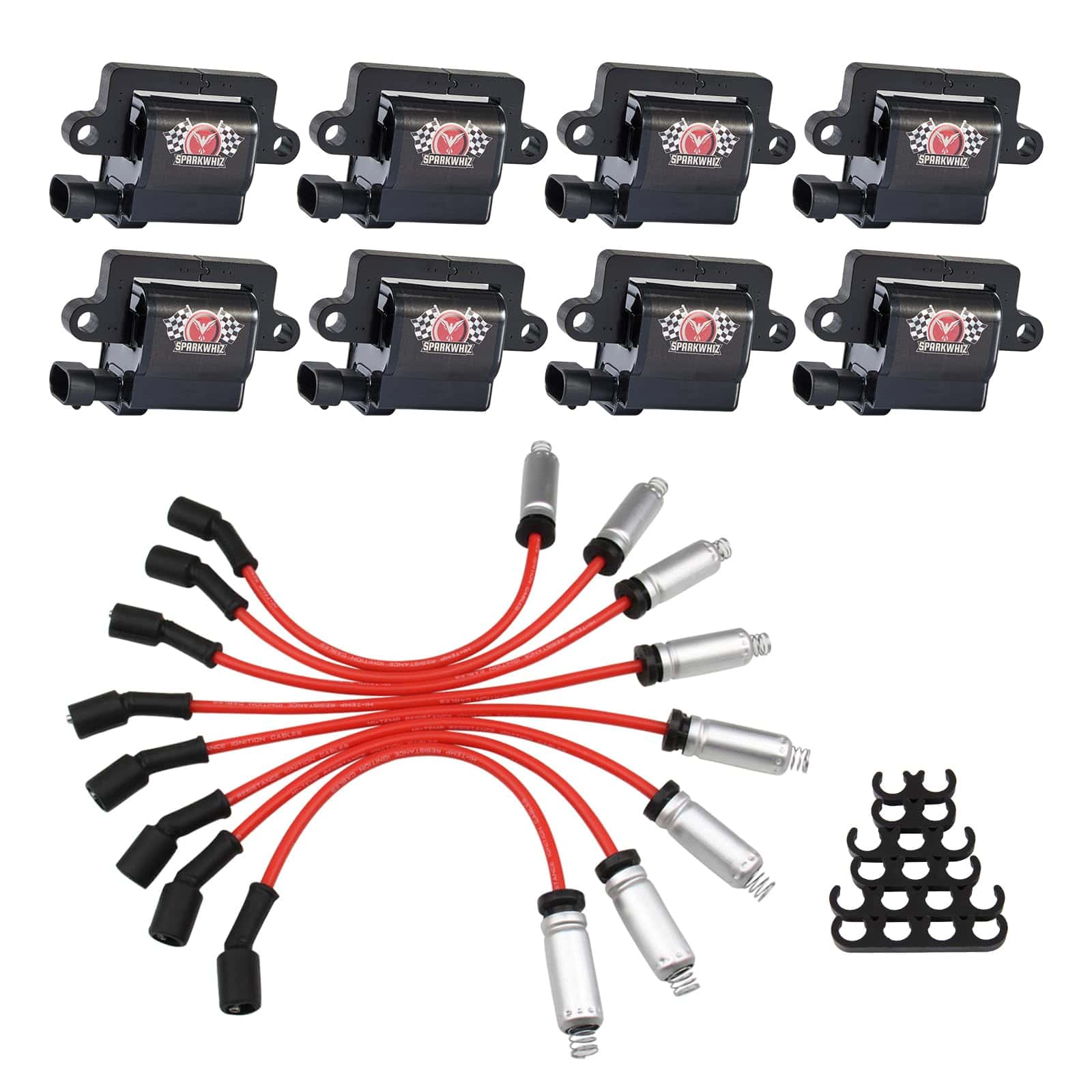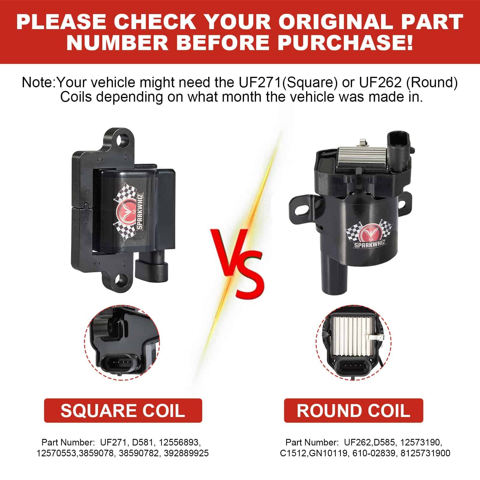 Por favor, tenga en cuenta: el mismo tipo de vehículo puede utilizar diferentes formas de bobina, CUADRADA (UF271/D581) o REDONDA (UF262/D585). Para evitar problemas de instalación, también debe verificar en el compartimiento del motor la forma de la bobina. Este ASIN es de bobinas cuadradas (UF271/D581). Número de piezas de repuesto: UF271, D581, 12556893, 12558693, C1208, GN10298, UF271, 52-1618, 5C1083, C1208, E226, 12570553, 3859078, 392889925, C1208, 38590782, 9748HH, 9748UU, 9748RR, 88862385. Compatible con Chevrolet Avalanche 2002-2006, Silverado 1999-2007, Tahoe 2000-2006, Express 2003-2006, SSR 2003-2004, Suburban 2000-2006, Monte Carlo 2006, Sonora 2003-2004, Trailblazer 2003-2004. Compatible con GMC Envoy XL 2003-2004, Savana 1500 2500 3500 2003-2007, Sierra 1500 1999-2006, Sierra 1500 Classic 2007, compatible con Hummer H2 2003-2007, compatible con Mercruiser 2001-2007. Este kit proporciona una durabilidad excelente para soportar diversas condiciones de conducción exigentes. Incluye la bobina de encendido de alto rendimiento UF271, que está fabricada con bobinas de cobre alemán y envuelta en goma de poliéster duradera; cables de bujía estándar de 8 mm.