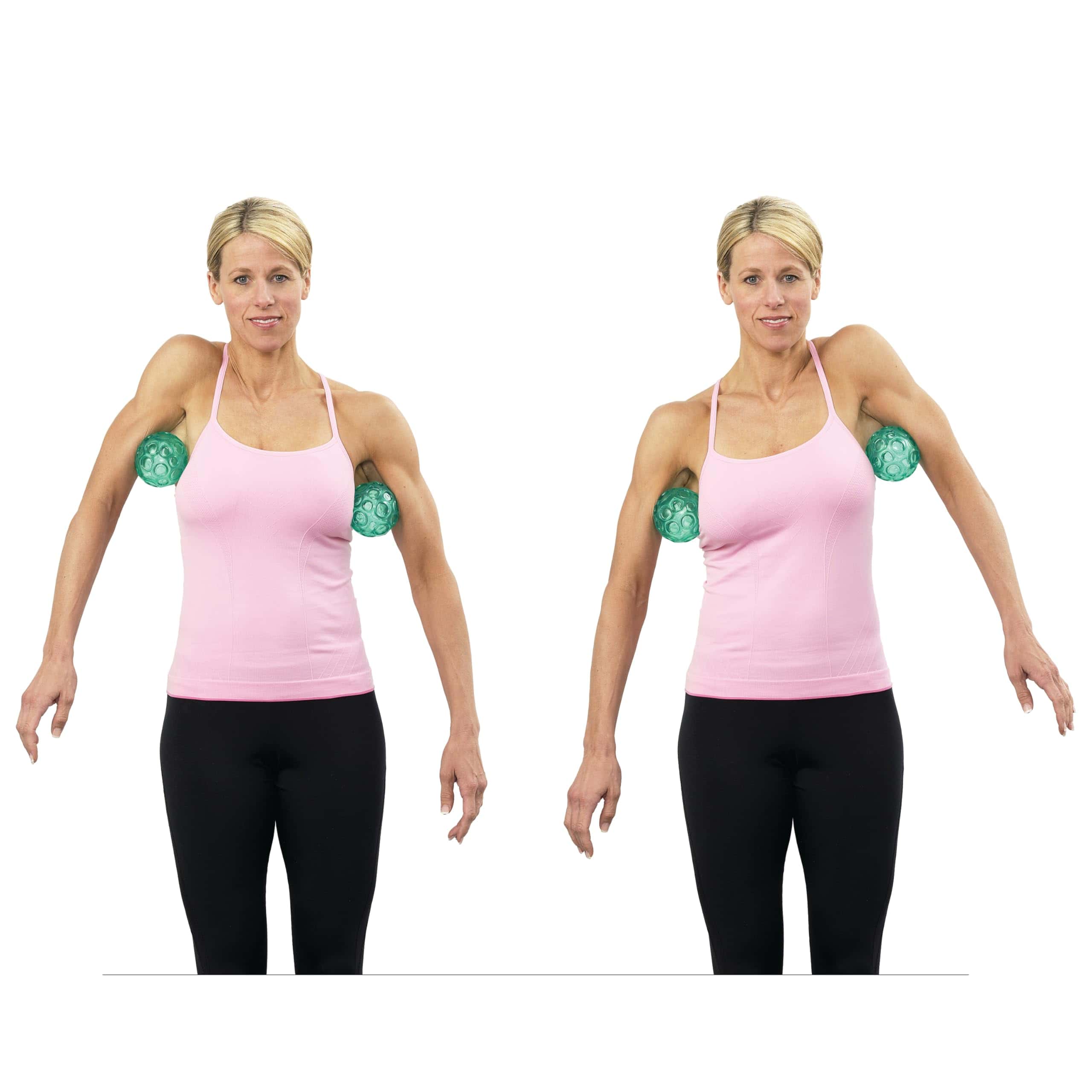 Conjunto de bolas de masaje: Usa estas bolas texturizadas de liberación miofascial del Método Franklin para masajear la espalda, cuello, caderas y más, y para realizar ejercicios de pies. Realiza masajes en hombros y áreas del cuello, espalda, mandíbula, codo, caderas, pies y más. La superficie texturizada única activa los músculos de relajación durante el masaje suave. Úsalo para liberación de fascia y entrenamiento de propiocepción golpeando suavemente el cuerpo o rodando diferentes áreas del cuerpo sobre las bolas. Bolas de masaje de alta calidad: Este conjunto de bolas de masaje se fabrica en Italia con materiales premium diseñados para resistir un uso repetido. Para Método Franklin: Creado específicamente para su uso con ejercicios del Método Franklin que combinan movimiento con técnicas de mindfulness. Estas bolas de masaje vienen parcialmente infladas y se pueden ajustar para adaptarse mejor a tu nivel de comodidad. Medidas: Con aproximadamente 3 de diámetro, este juego de bolas miofasciales se puede usar en cualquier lugar donde desees aliviar la tensión. Juego de dos. Libre de látex y ftalatos.