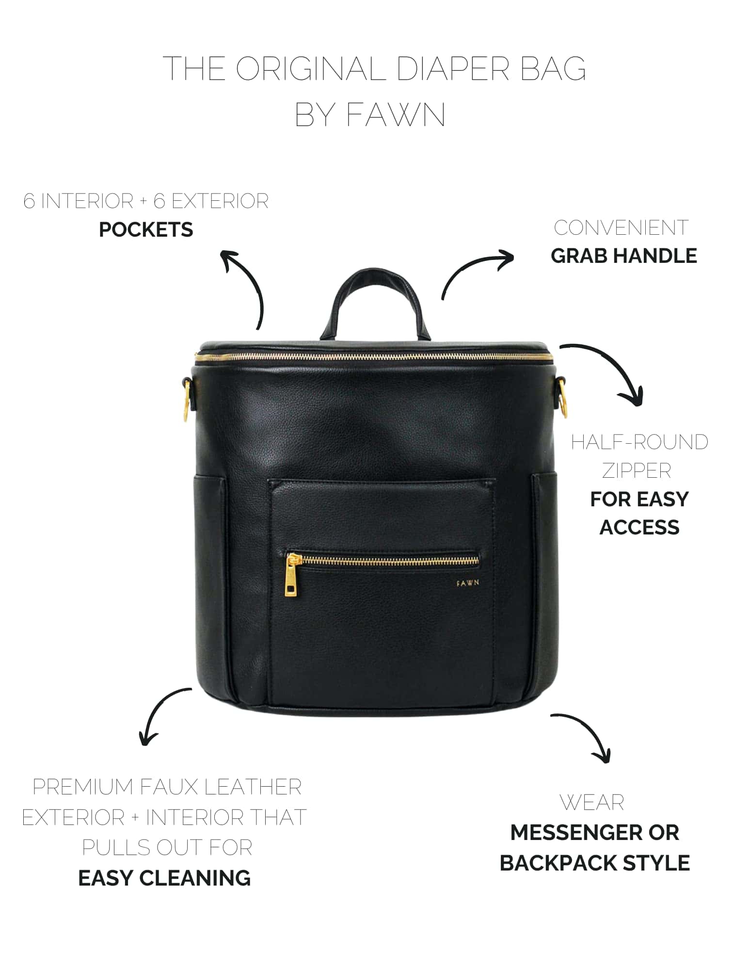 Conjunto de bolsa de pañales FAWN DESIGN – Mochila de piel