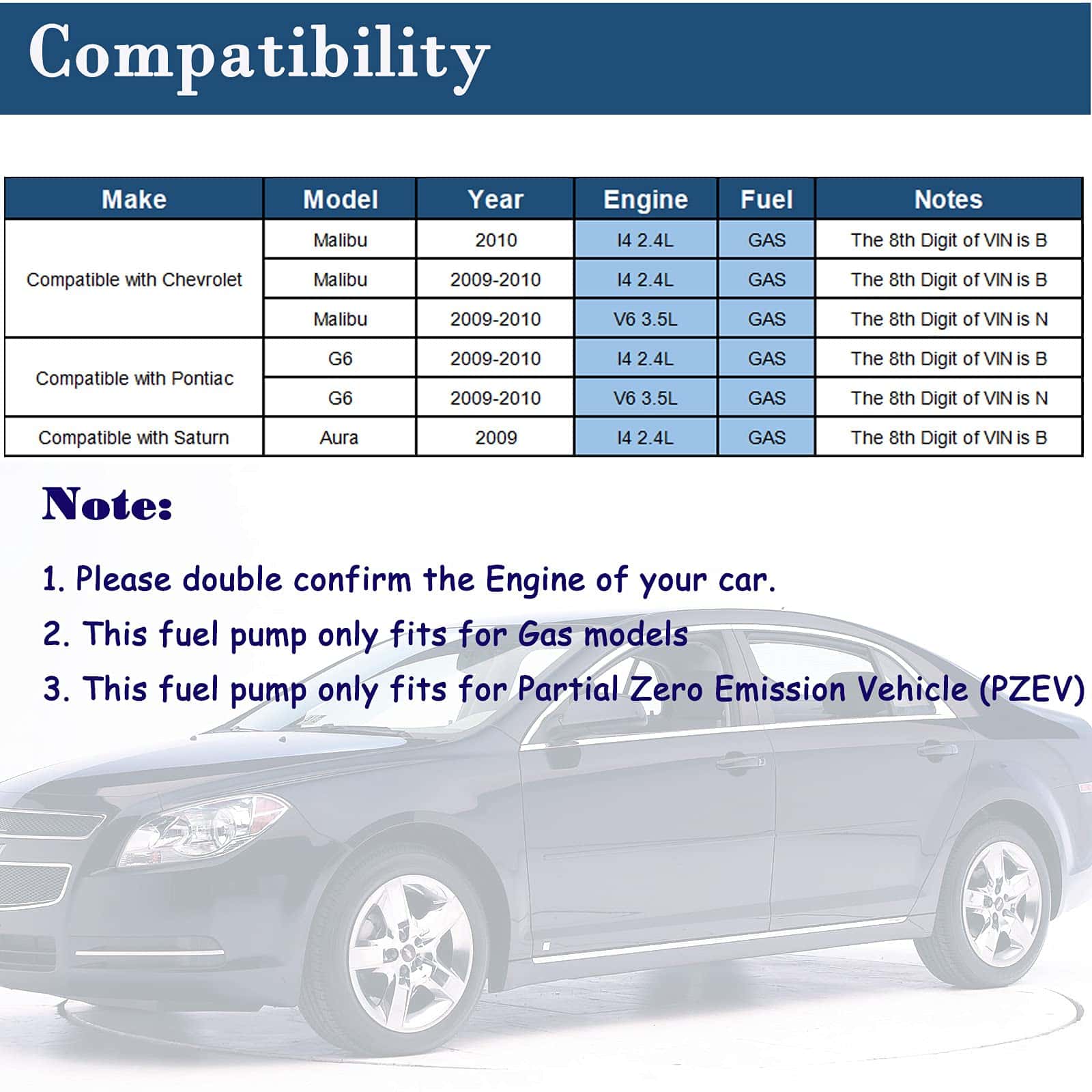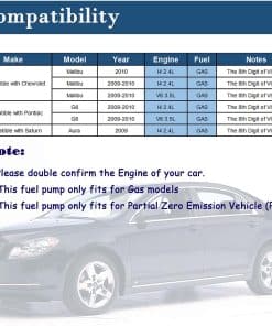 2. Compatible con Chevy Malibu, Pontiac G6 2009-2010 l4 2.4L(GAS —El 8vo dígito de VIN es B; 2009-2010 V6 3.5L(GAS)—El 8vo dígito de VIN es N.