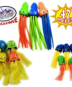 Prepárate para un día inolvidable de emoción junto a la piscina con el Conjunto de Buceo Súper Definitivo de 47 Piezas de Matty’s Toy Stop. Este increíble conjunto es un imprescindible para las familias que aman pasar tiempo en la piscina, ofreciendo horas interminables de entretenimiento acuático. Con 47 emocionantes piezas, garantiza diversión sin parar para tu familia y todo el vecindario. Sumérgete en las profundidades de la aventura submarina con confianza, sabiendo que tienes a tu disposición una variedad de emocionantes juguetes de buceo. El conjunto incluye 5 coloridos Palos de Buceo, 4 Anillos de Buceo, 10 cautivadoras Gemas de Buceo, 3 Pelotas de Buceo envolventes, 4 rápidos Torpedos de Buceo, 6 medusas Filamentosas cautivadoras, 4 fascinantes Medusas de Malla, 3 Pulpos Filamentosos elásticos, 3 emocionantes Tiburones de Buceo, 3 amigables Peces de Buceo, 2 prácticas Redes de Pesca y una Bolsa de Almacenamiento de Malla adicional de Regalo para una organización fácil. Cómo jugar Es ¡simple! Arroja los juguetes de buceo a la piscina y mira cómo se hunden elegantemente hasta el fondo. Luego, es hora de que comience la verdadera emoción. Sumérgete y recupera cada juguete, poniendo a prueba tus habilidades de natación y agilidad bajo el agua. Con una amplia variedad de formas, colores y diseños, no hay escasez de desafíos de buceo y emocionantes misiones acuáticas. Este conjunto de buceo no solo es perfecto para la diversión familiar, sino que también es un regalo ideal para amantes de la playa, entusiastas de la piscina y buscadores de aventuras. Llévalo a la playa, empácalo para tus vacaciones o llévalo a fiestas y encuentros. Es una forma segura de crear recuerdos duraderos y momentos llenos de risas. Diseñado para mayores de 6 años, este conjunto de buceo garantiza un tiempo estupendo para toda la familia. Observa cómo la confianza de los niños en el agua crece, sus habilidades de natación mejoran y su creatividad en el juego submarino florece. Es la oportunidad perfecta para unirte, participar en una competencia saludable y crear experiencias inolvidables. Prepárate para una aventura acuática como ninguna otra con el Conjunto de Buceo Súper Definitivo de 47 Piezas de Matty’s Toy Stop.
